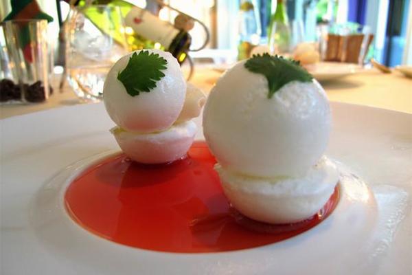 肉質鮮嫩,鹹味適中的鹽水鵝;熱菜涼吃,青魚炸到外酥里嫩又微甜不會膩口的老上海熏魚;運用了分子料理製成,外面綠瑩瑩的冰球,敲開以後,裡面的調羹呈現出的是白切雞、蝦和毛豆,很爽口的冰球蘇浙三小味;裝在「獅子頭」裡面端上來,搭配肥瘦相間的丸子,下面墊的白菜的湯清肉鮮的國宴獅子頭,這些美味,可能是全北京最正統的淮南菜。