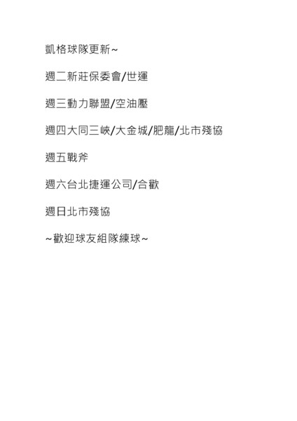凱格快訊~8/24(日)凱格週賽限70人參賽!!謝謝您的配合!!
