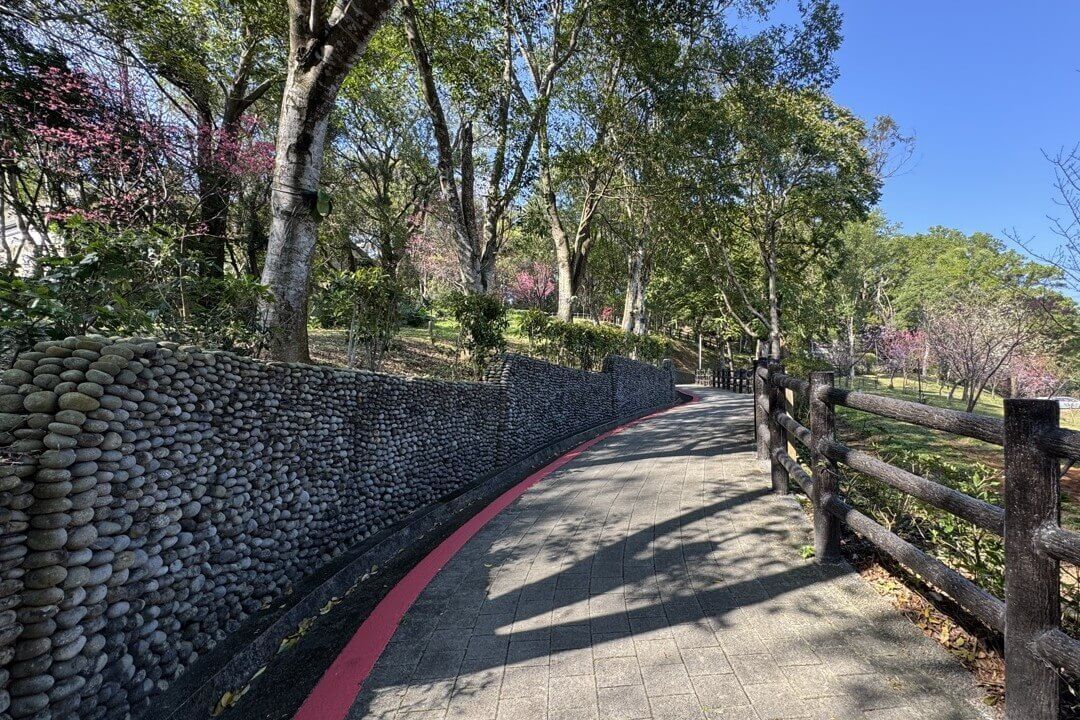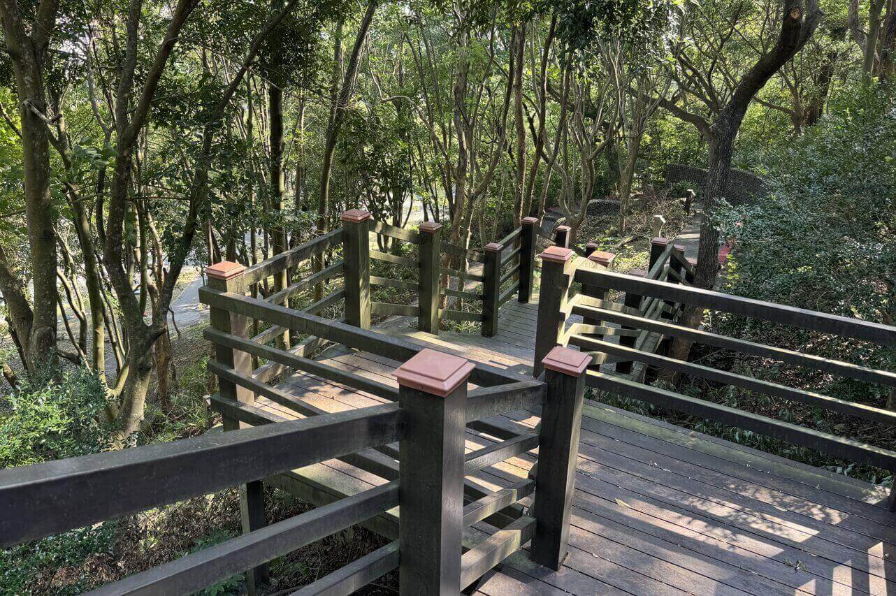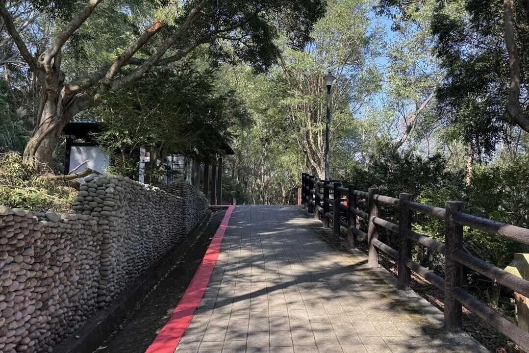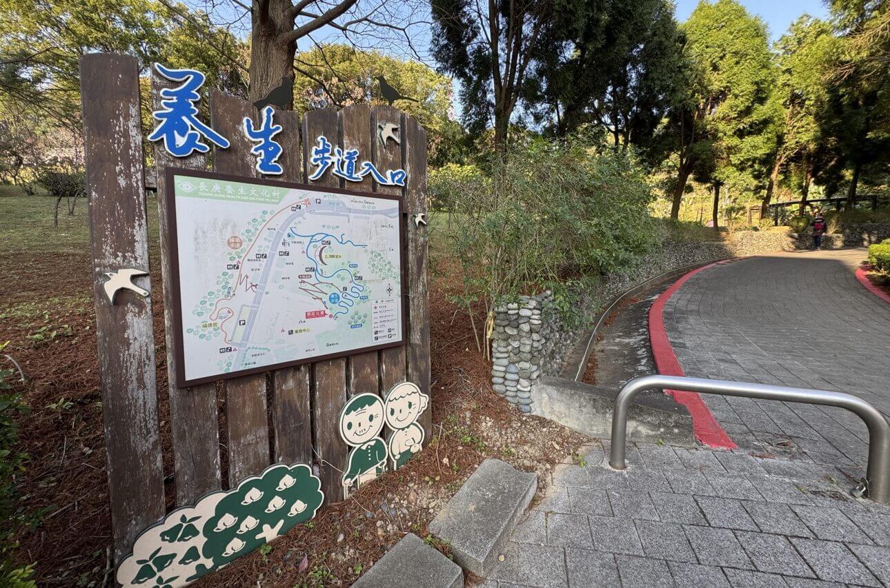 ↓輕輕鬆鬆就走完福氣步道,接著跨越馬路,來到對面的「養生步道」,這裡的景觀更豐富。
