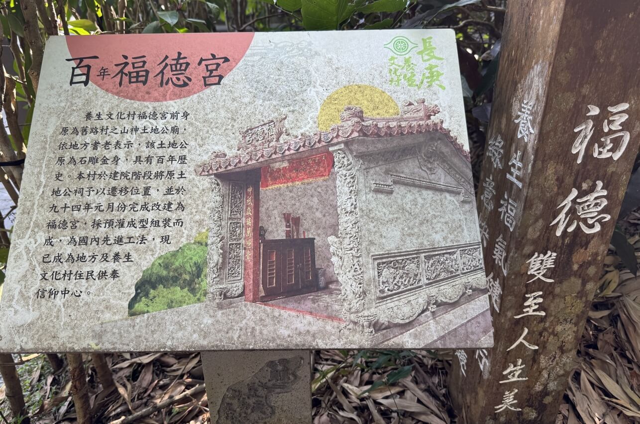 ↓這座福德宮,當初因配合養生村的建村而遷建於此,其內之土地公已有百年歷史,是養生村住民的信仰中心。