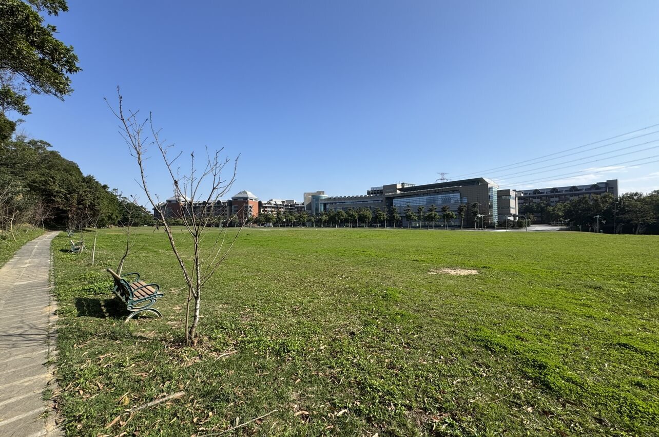 ↓步道盡頭,來到一片大草坪,是假日遛小孩、遛毛小孩的好場所。