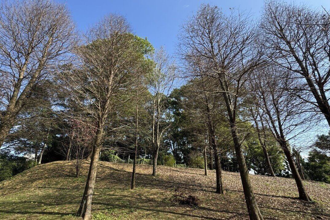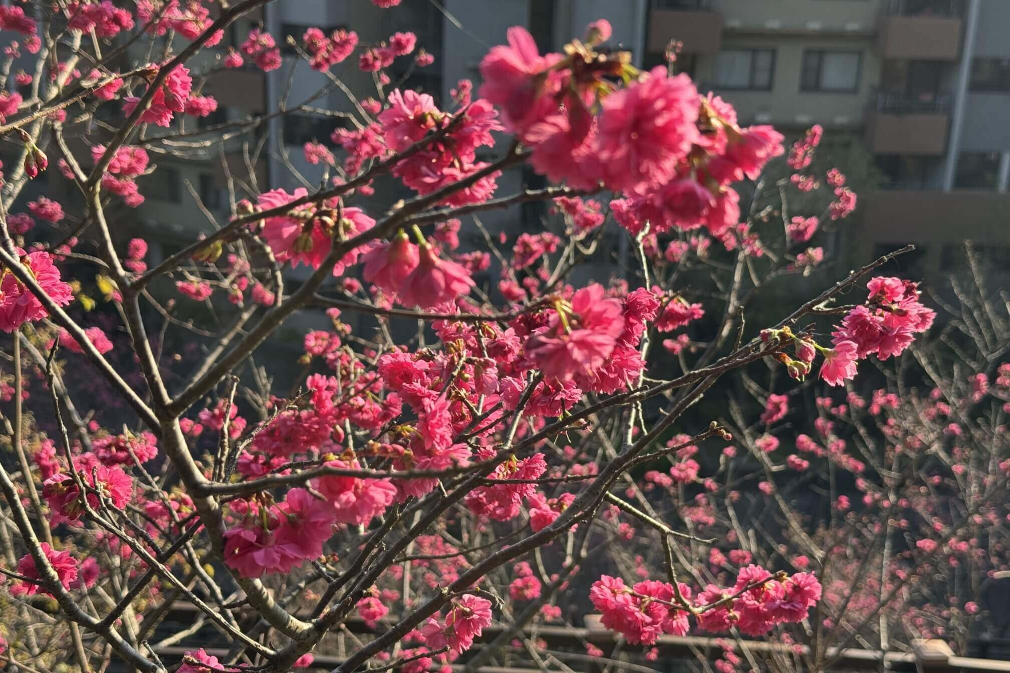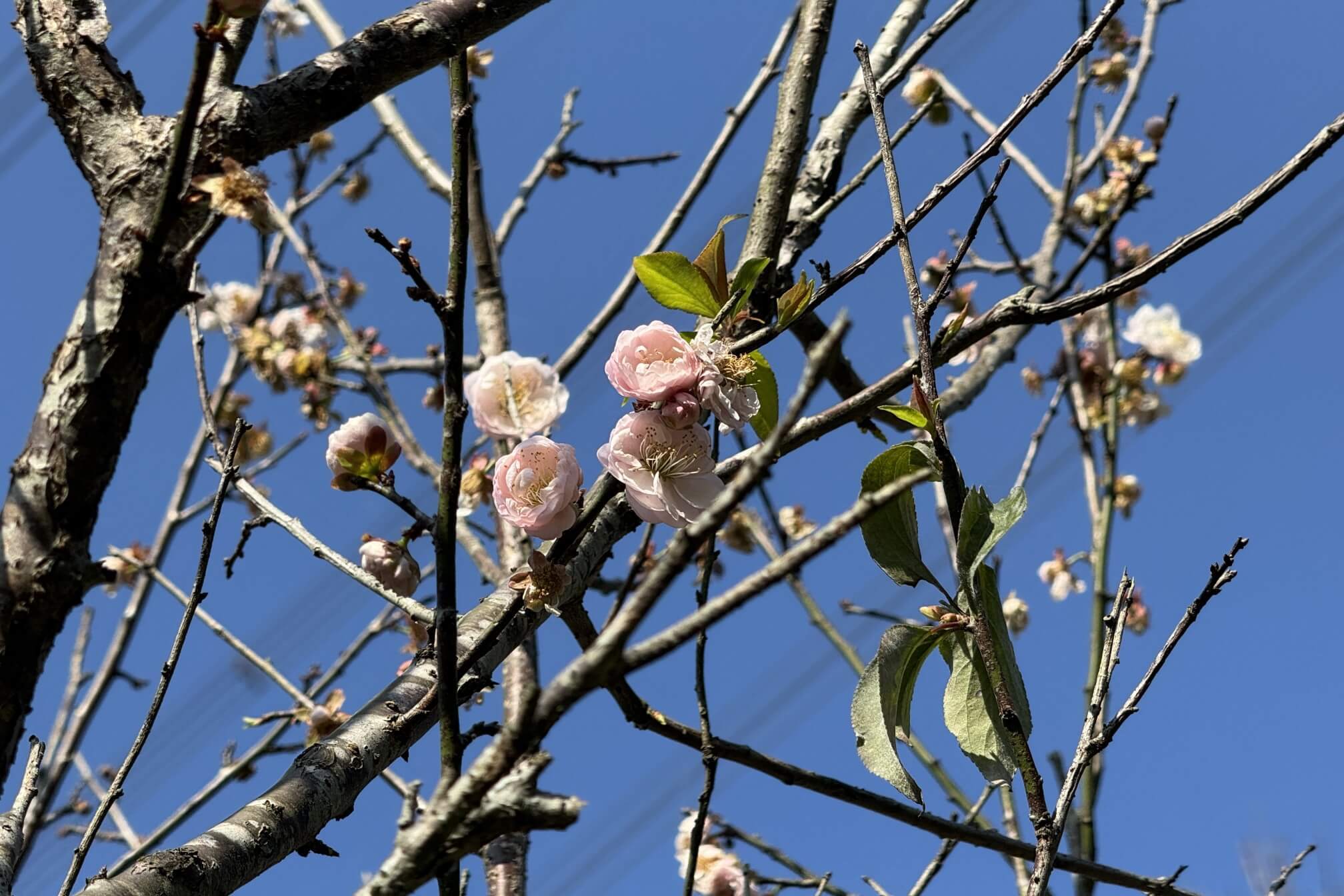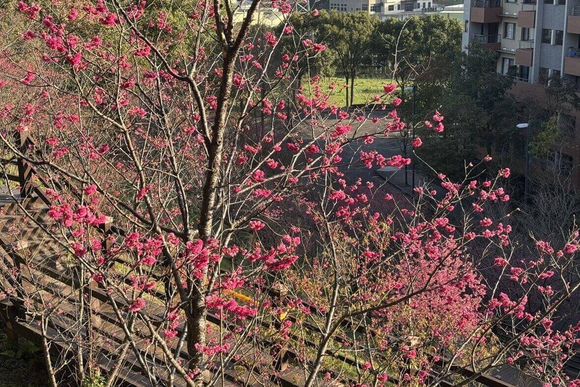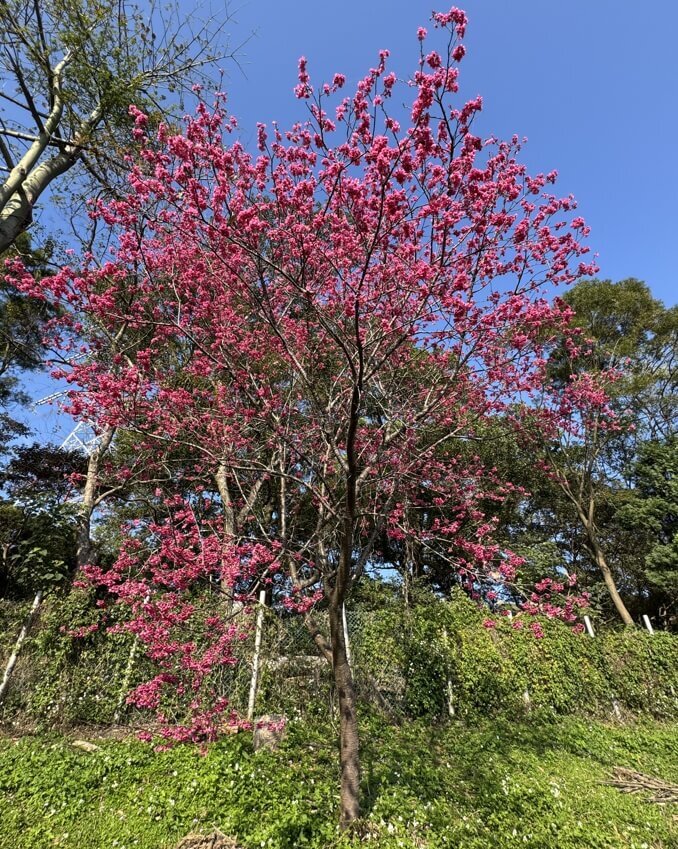 ↓丘頂眺望台旁,也有櫻花盛開,應該是「重瓣緋寒櫻(八重櫻)」。