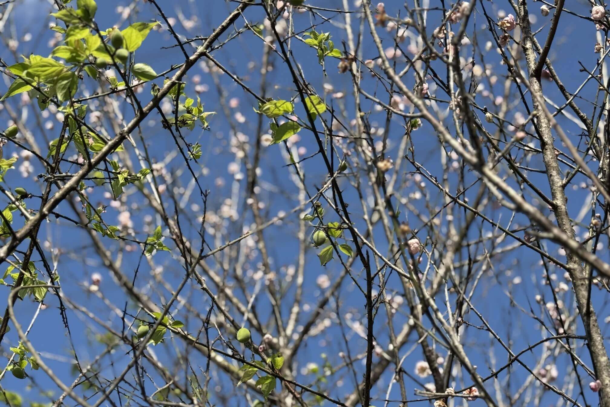 ↓這一區的梅樹,花、果、葉並存,難得的景象。