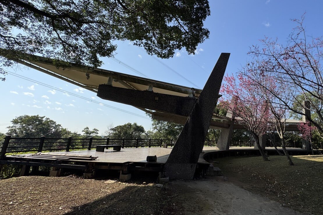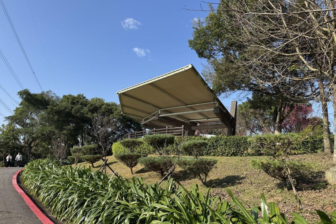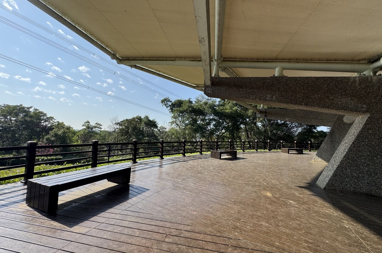 ↓丘頂眺望台雖然地勢高,視野卻不是太好,倒是一整排的座椅方便休息。