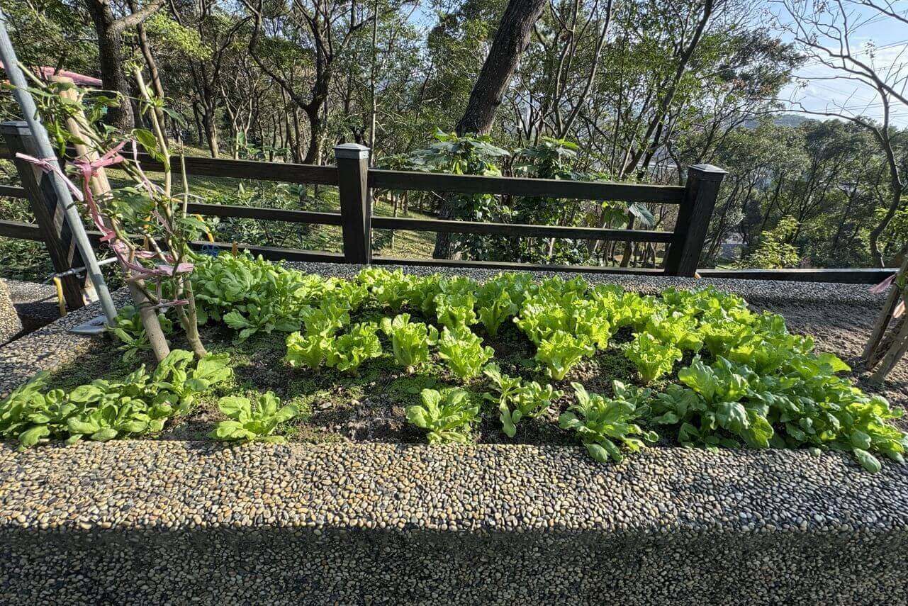 ↓前方是養生村裡很特別的「農耕區」,這裡有果園也有菜圃,先看到的是菜圃。