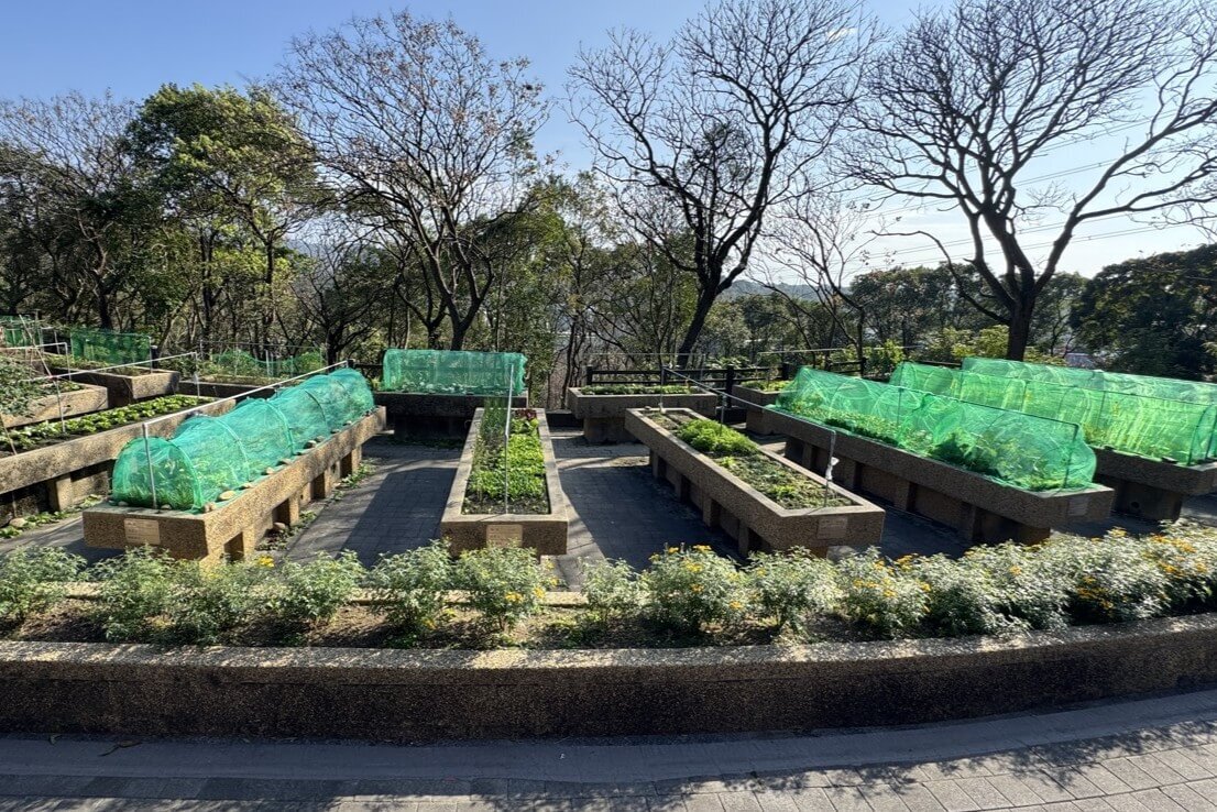 ↓菜圃供養生村住戶申請栽植,採高架設計,有機、無化學肥培育。