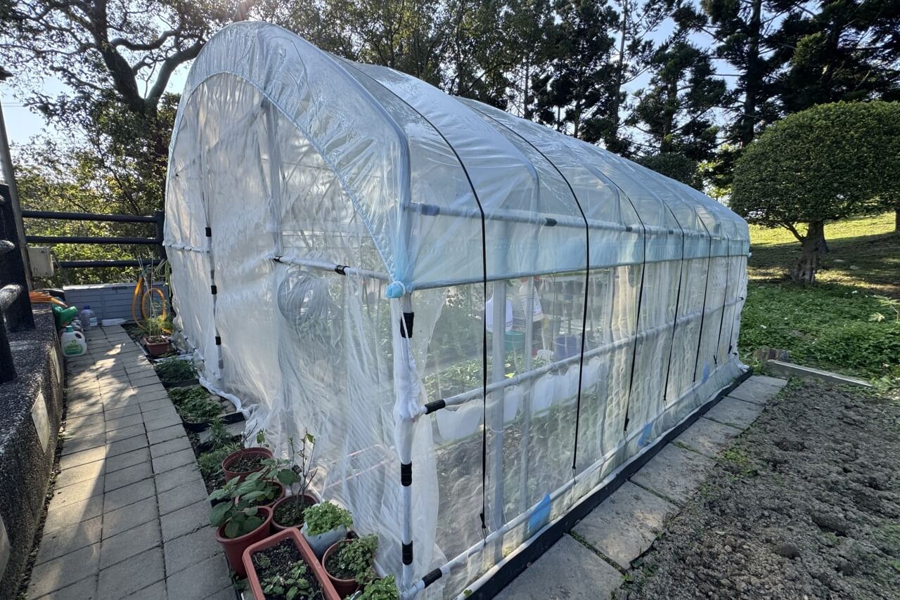 ↓也有住戶分到的是地面種植區,直接在地面上鋪上大紗網,像是一座溫室。