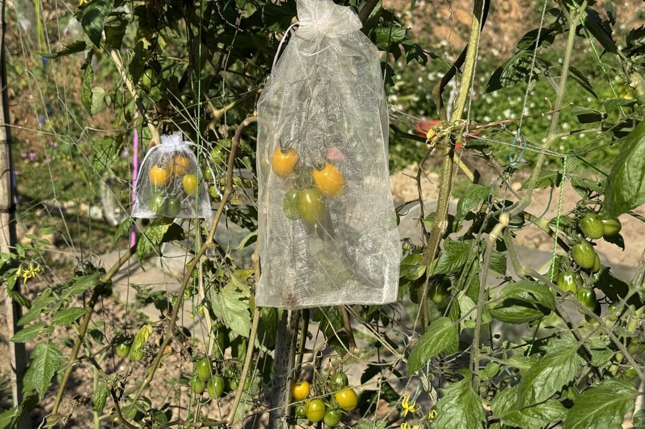 ↓有人種番茄,也裝了套袋。