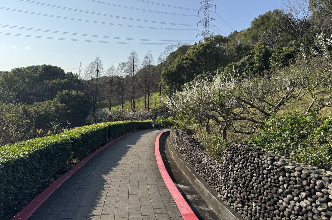 2026/02/12 桃園市>龜山區>長庚養生文化村>福氣步道+養生步道>親子級的森林步道、住戶自助農耕區、數十種有機果樹區、梅李桃花爭豔、平易櫻花步道