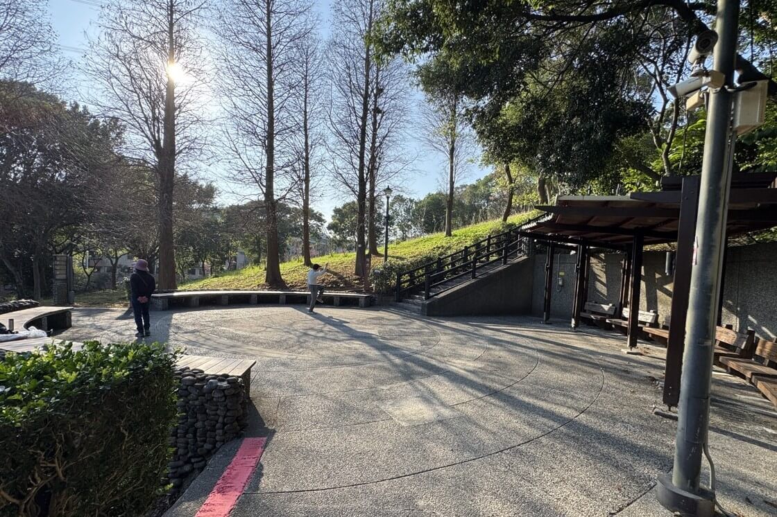 ↓又有一處休憩活動區,畢竟會住進養生村的民眾,年紀都偏大,休憩區對大家很重要,有民眾在此伸展筋骨。