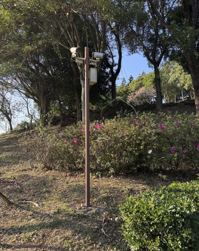 ↓步道旁立了許多監視器,與其說是監控民眾、嚇阻偷摘果實,毋寧相信是為了照顧年邁的住戶,保護其在步道散步的安全,隨時有狀況都可以即時處理。