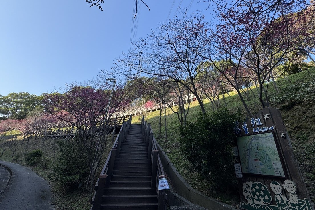 ↓木棧道平緩好走,部分為階梯步道,沿途種滿了櫻花。