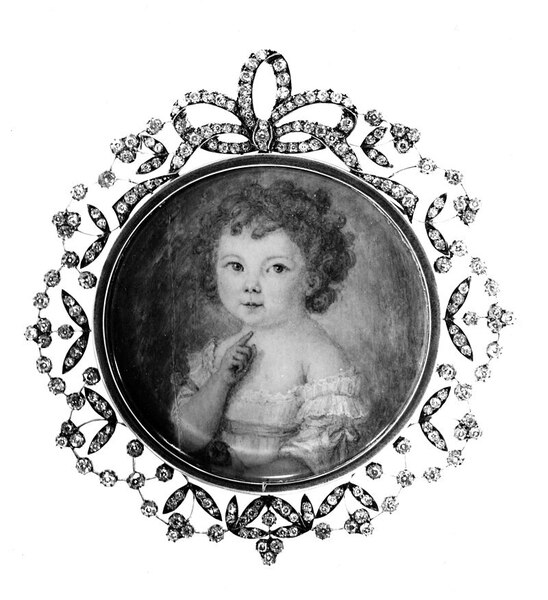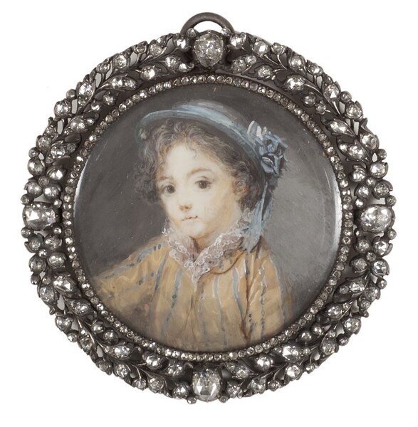 1793 年,瑪格麗特·傑拉德 (Marguerite Gérard) 為她的妹妹瑪麗·安妮 (Marie-Anne) 創作一幅肖像,她戴著革命帽章(紙板上的橢圓形微型畫,13x10 厘米,都靈古代藝術博物館)。