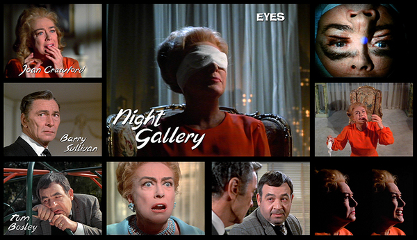 自從首次播出和後來重新播出以來,《眼睛》一直是《Night Gallery》三部作品中最受歡迎的片段,最引人注目的是因為它是22歲的史蒂芬史匹柏的導演處女作,也是銀幕傳奇瓊克勞馥的最後表演之一。