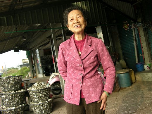 她說,養蚵很難顧生計,一台斤賣八十元,算成本,綁一串蚵殼要花五元,至少要養一年半載才有機會收成,事後請別人剝蚵,每斤也要花掉廿五元,如果遇到颱風,可是血本無歸,兒子早就在勸不要再養蚵,只是政府還沒有收購,這段時間養蚵就算是一些工藝,不要讓老骨頭散了罷。