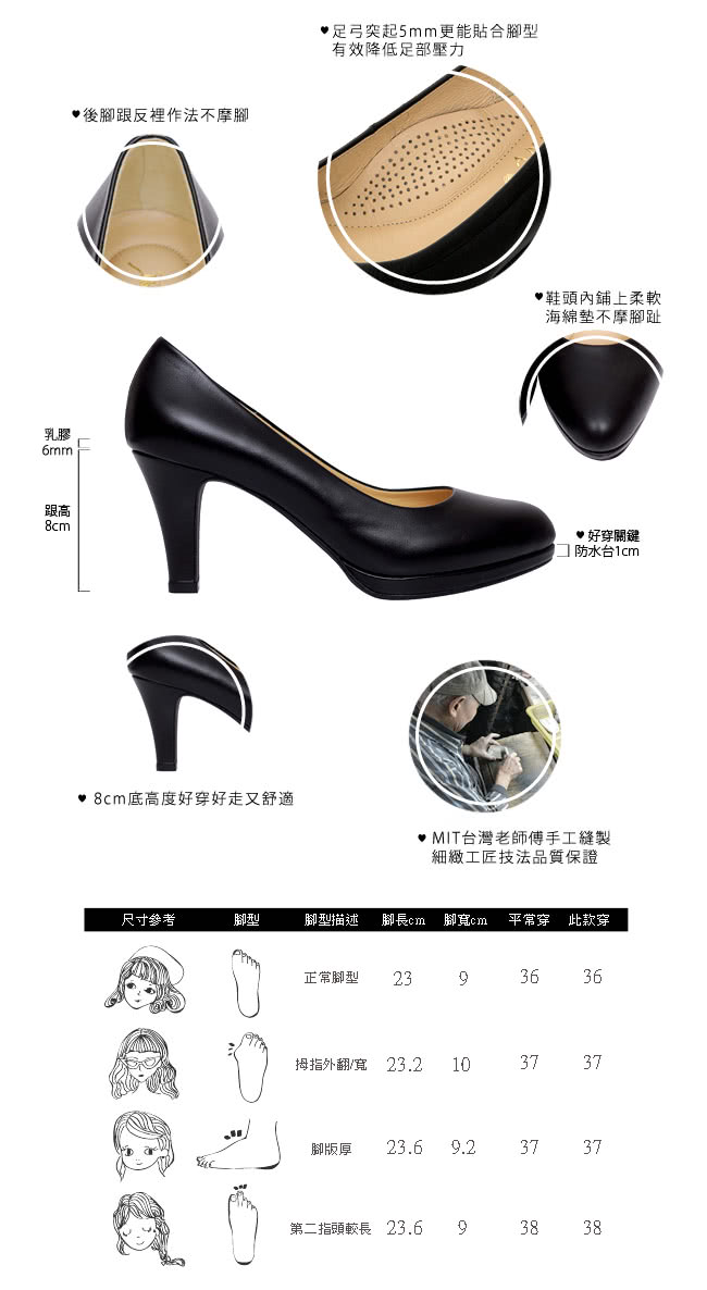 【Ann’S】美腿高度-全真羊皮防水台尖頭高跟包鞋(黑)這類型的尺寸規格要怎麼看有保護腳的功能嗎