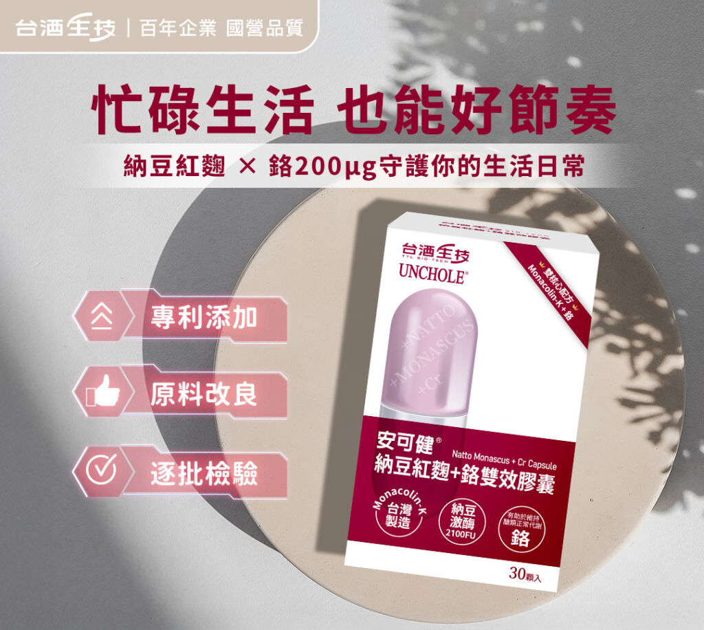 紅麴、納豆與鉻,雖然各自著重在不同代謝面向,但當它們被整合在同一配方裡時,能夠同時回應外食族、壓力族群與體態管理者的不同需求,也展現出「複方設計」的真正價值。