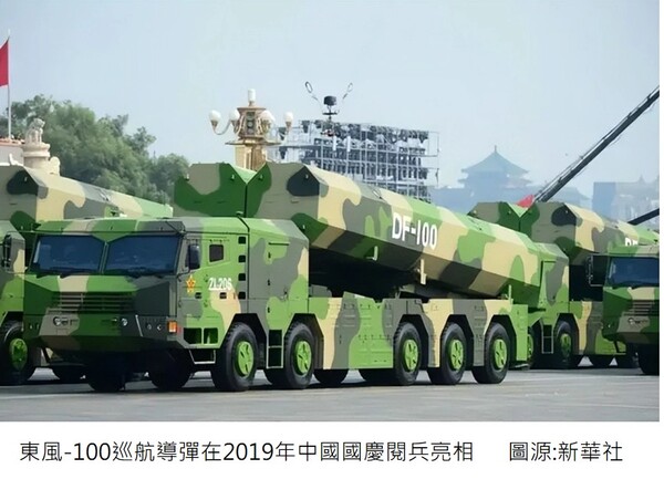 東風-100在2019中國成立70週年閱兵式上首次亮相,旨在對抗印太地區的美國和盟軍。該飛彈的射程為3,000至4,000公里,巡航速度為4馬赫,精確打擊能力使其能夠擊中誤差數公尺內的目標,對美國在沖繩和關島的基地構成威脅。當從中國的轟-6N轟炸機上部署時,其航程可能超過6,000公里。該導彈對美軍航母打擊群構成了嚴峻挑戰。東風-100可從陸基發射器或轟炸機上部署,有助於中國的反介入/區域拒止(A2/AD)戰略,旨在逼美軍推離西太平洋更遠。央視發表東風-100視頻表明,北京在下個月的閱兵式之前故意向國內觀眾和外國對手發出其不斷增強的遠程打擊能力的信號。東風-100(東風-100),又稱CJ-100,是中國研製的戰略超音速巡航飛彈系統。它在2019年國慶70年閱兵式上首次亮相,象徵著中國增強戰略威懾能力的一個重要里程碑。東風-100是一種遠程超音速巡航導彈,主要設計用於對高價值目標進行精確打擊,包括海軍資產和地面設施。速度可達到4馬赫或更高速度。使用公路移動發射平台,可增強其生存能力和操作靈活性。能夠攜帶常規彈頭和可能的核彈頭。具有先進的導航和制導系統,包括衛星和慣性導航,可實現精確定位。東風-100 對中國有重大的戰略意義,它凸顯了中國轉向開發挑戰傳統權力動態的先進飛彈技術。東風-100增強了中國的A2/AD戰略,旨在阻止對手在印太地區自由行動,特別是在南海和台灣海峽等有爭議的地區。東風-100 凸顯了中國將力量投射到境外的能力。它補充了解放軍火箭軍日益擴大的影響力,並鞏固了中國作為全球軍事強國的地位。
