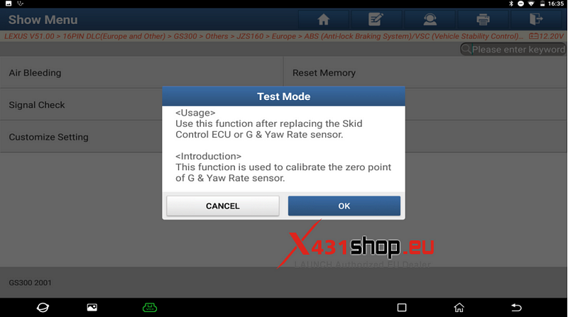4. 更換防滑控制 ECU 或 G & 橫擺率感知器後使用此功能。按一下“確定”。