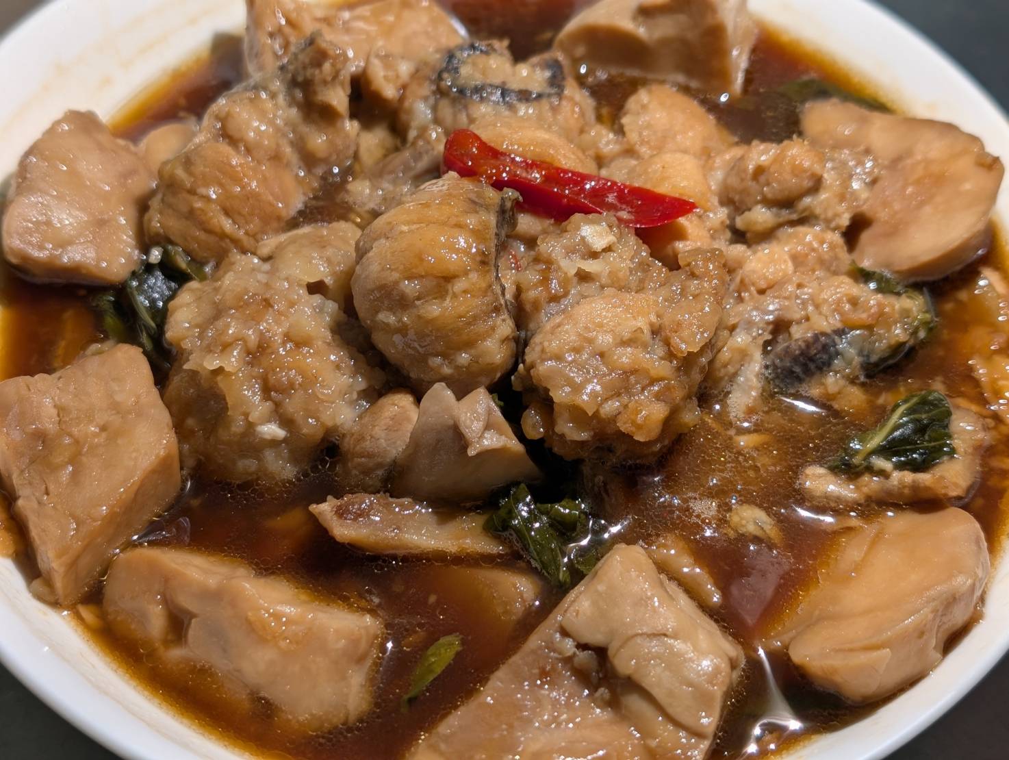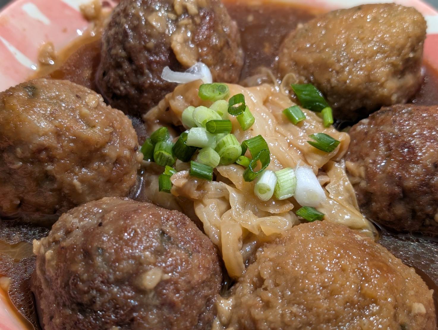 搭配濃郁紅燒湯頭,做出來的旗魚獅子頭。