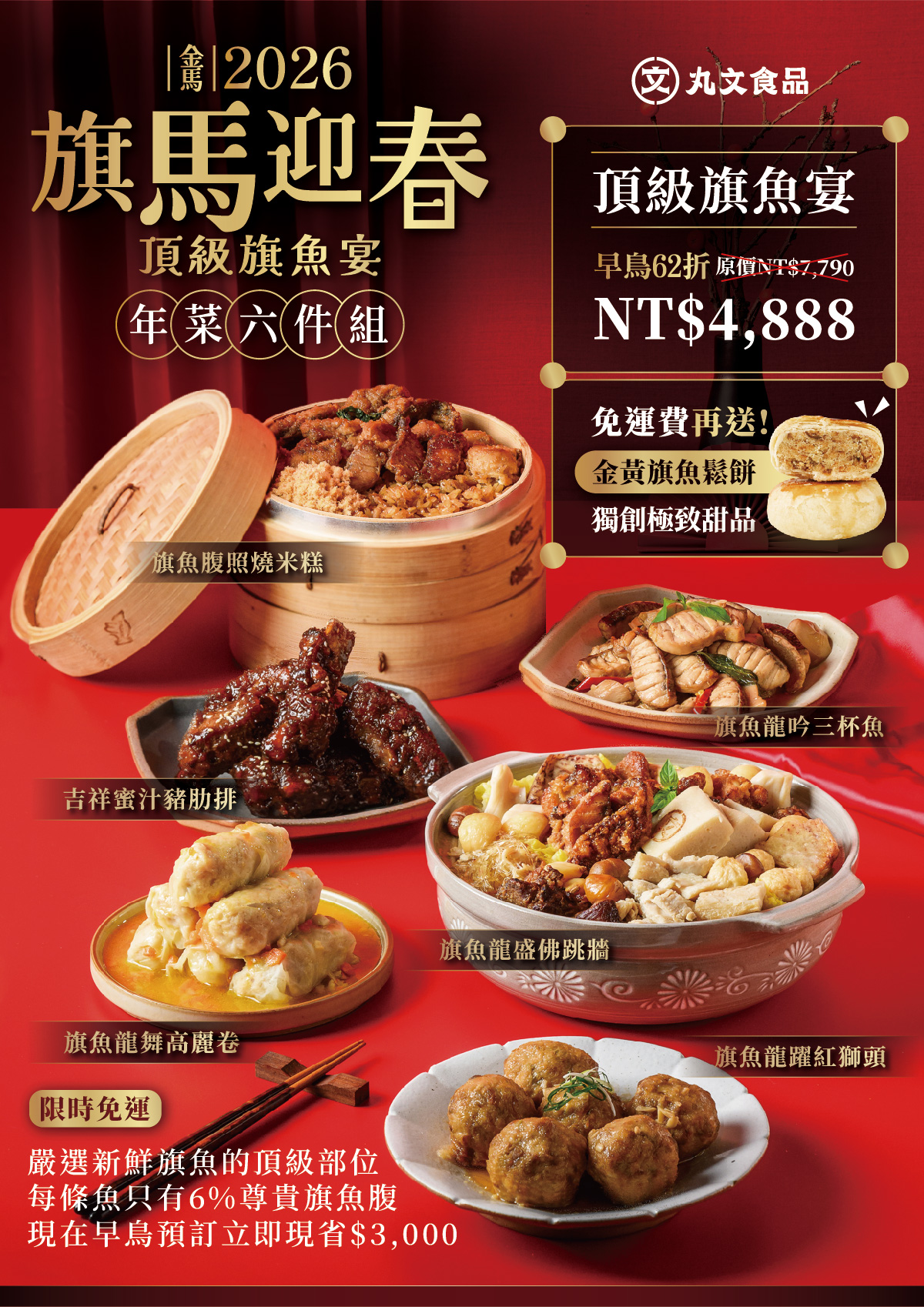 2026年丸文食品推出【旗馬迎春年菜六入組】,