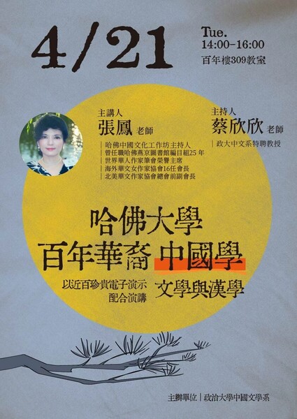 講題:「 哈佛大學百年華裔中國學-文學與漢學」