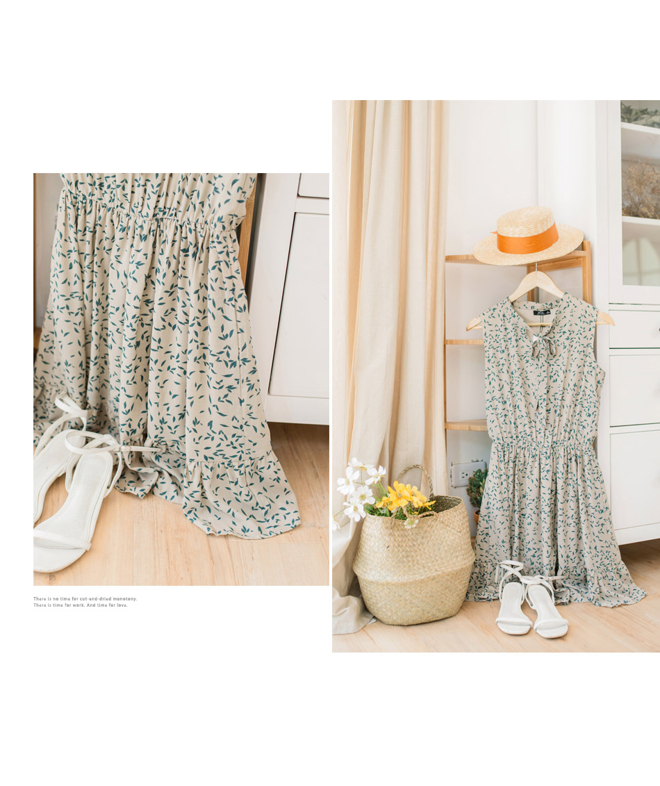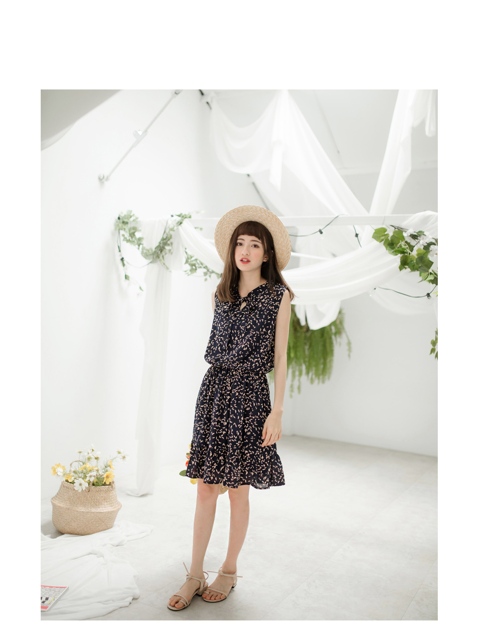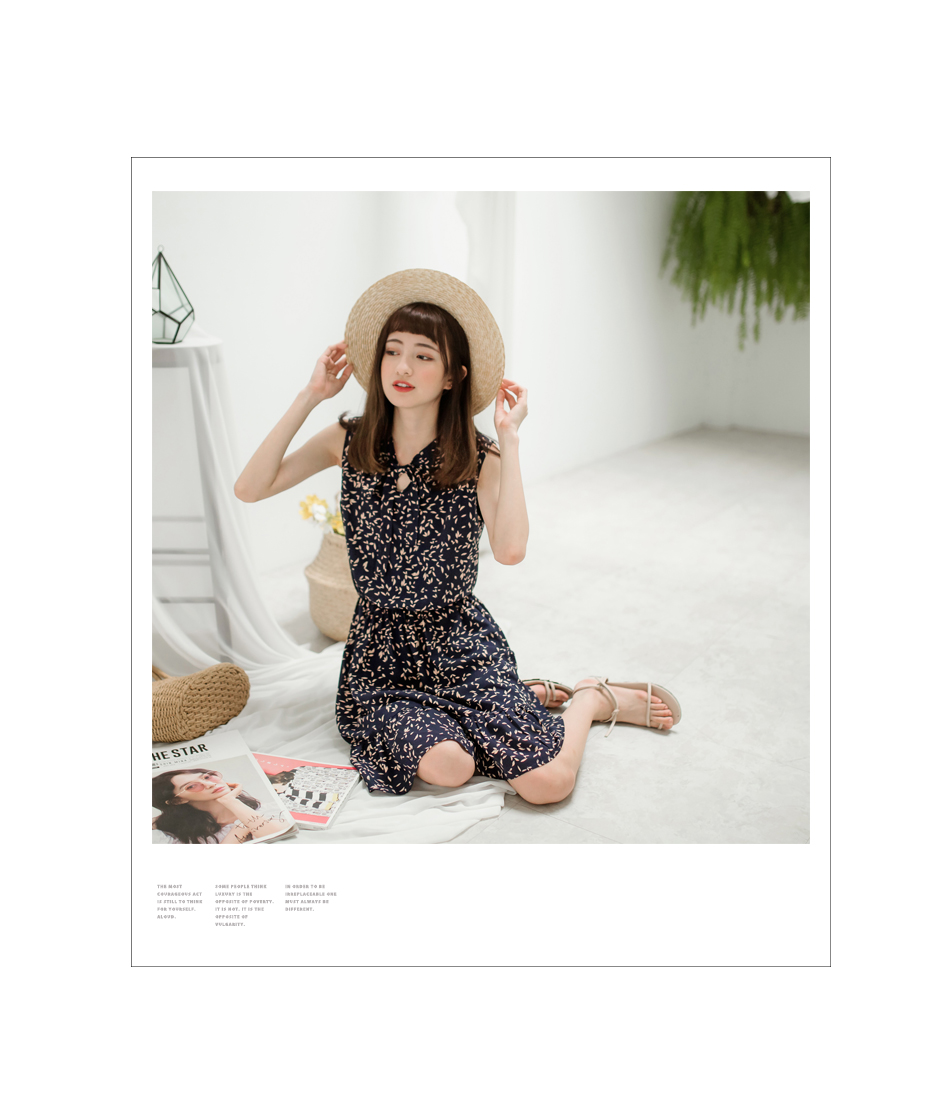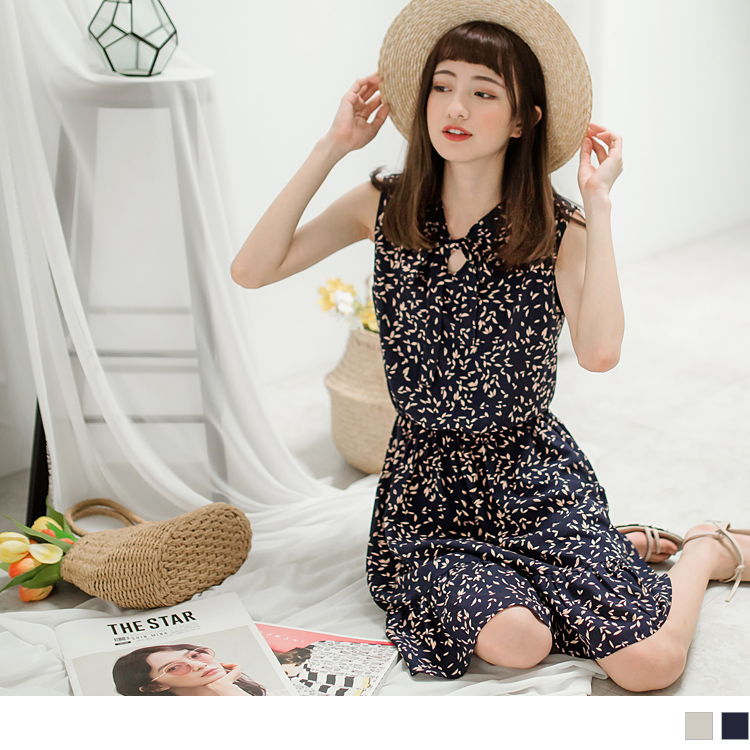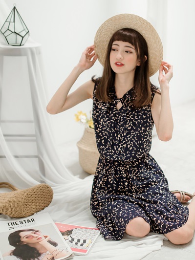 滿版印花領口綁帶縮腰洋裝夏天穿會不會太悶熱如何穿搭比較好看