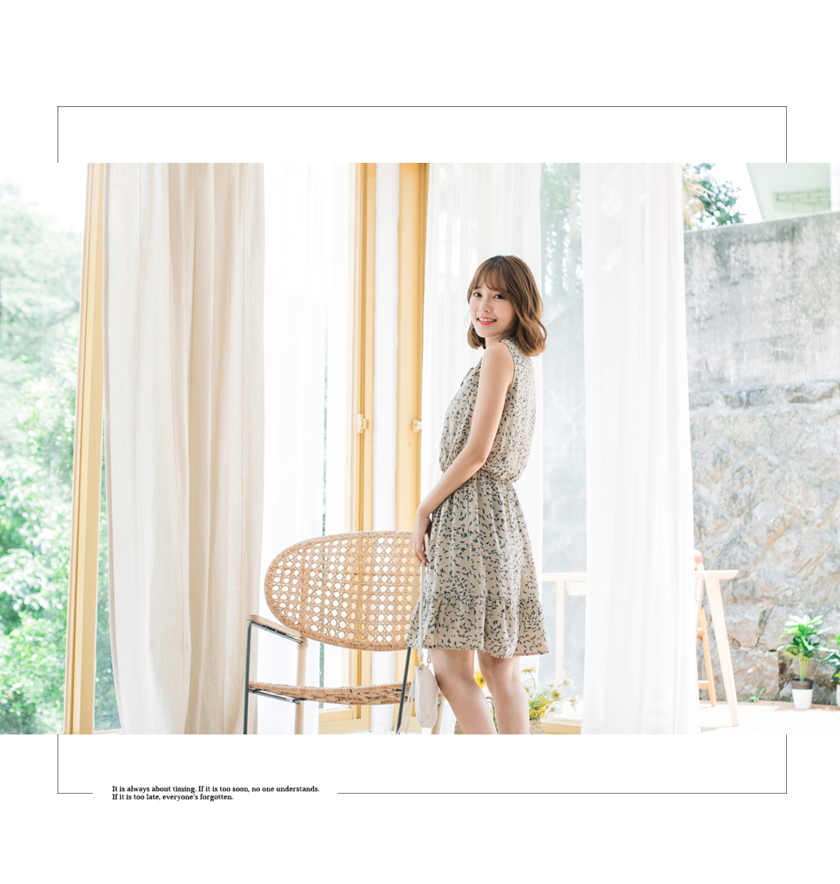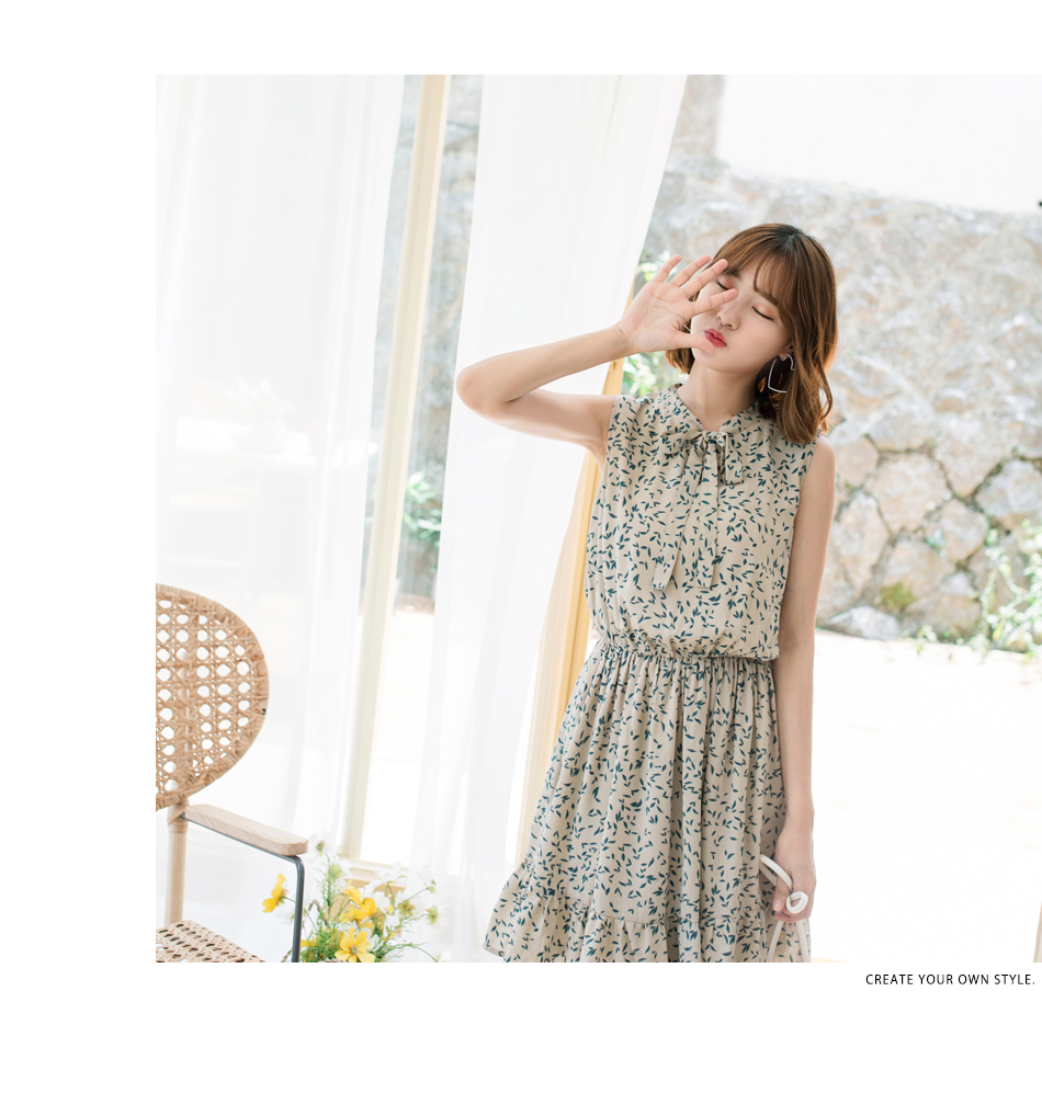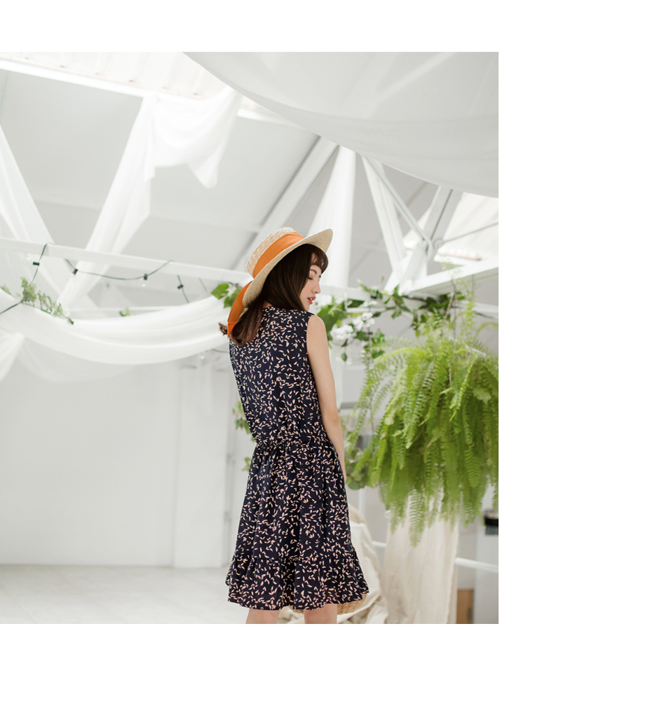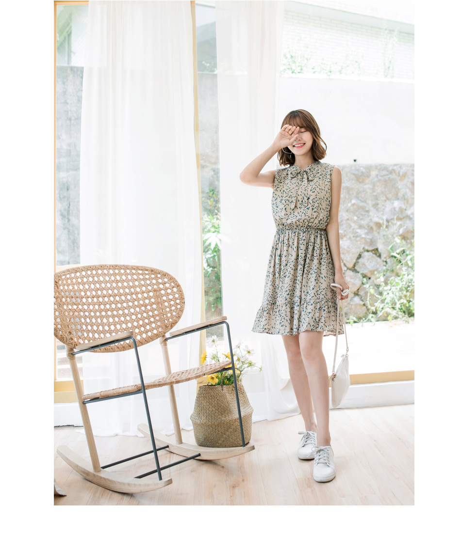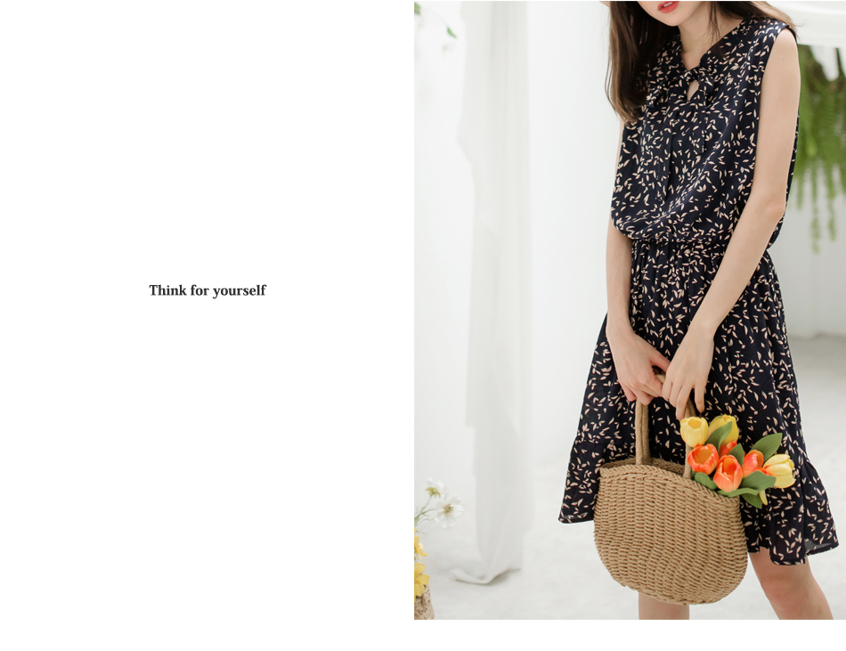 滿版印花領口綁帶縮腰洋裝夏天穿會不會太悶熱如何穿搭比較好看