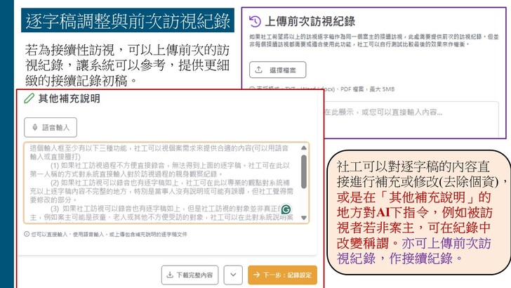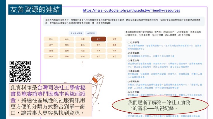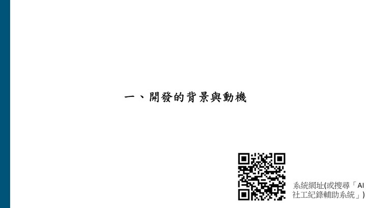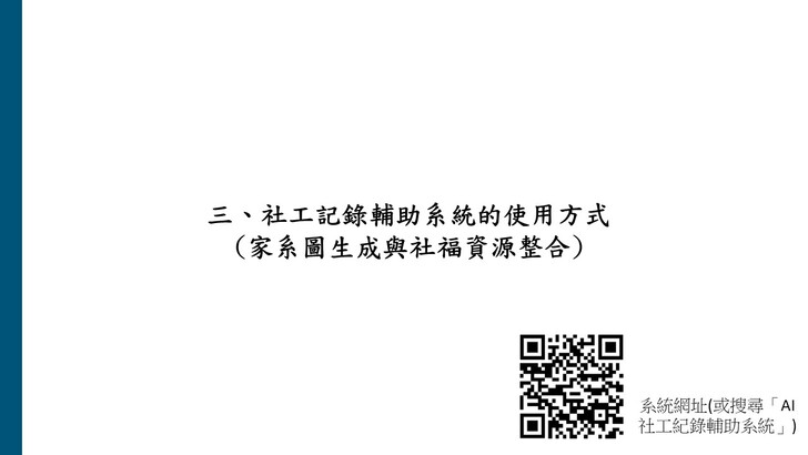 「AI社工紀錄輔助系統」之系統連結與其他關於系統的說明與更新資訊可參考以下