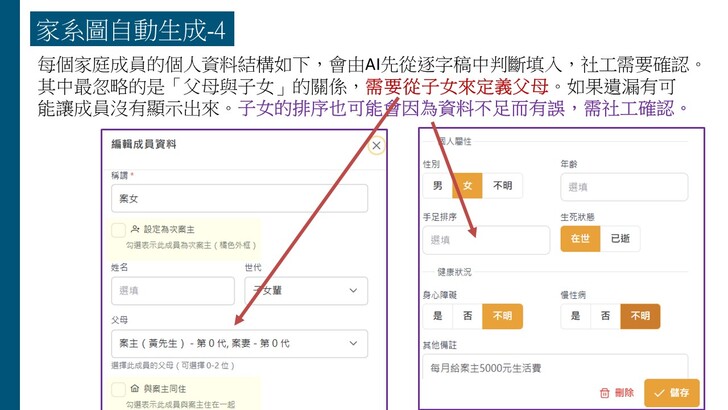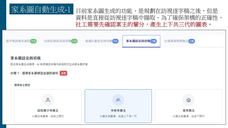 1. AI社工紀錄輔助系統使用說明(V2) (Youtube影片,含訪視紀錄、家系圖、處遇計畫與社福資源搜尋等功能)