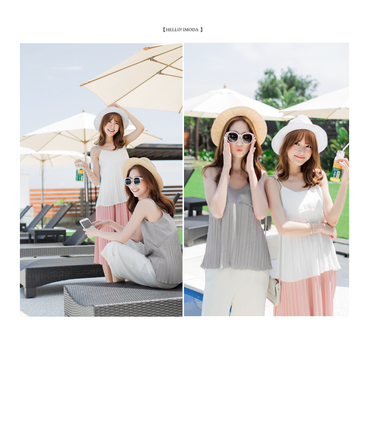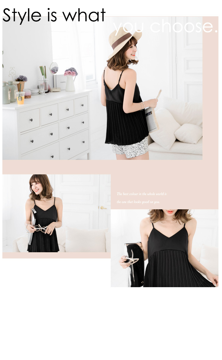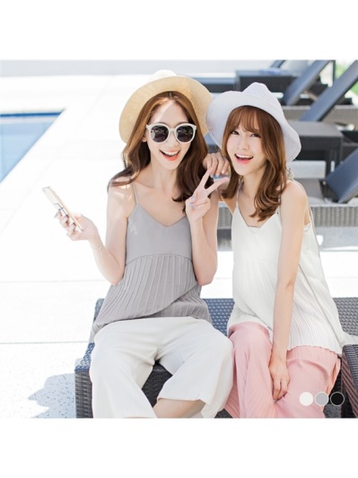 V領拼接百摺細肩帶上衣.3色夏天穿會不會太悶熱如何穿搭比較好看