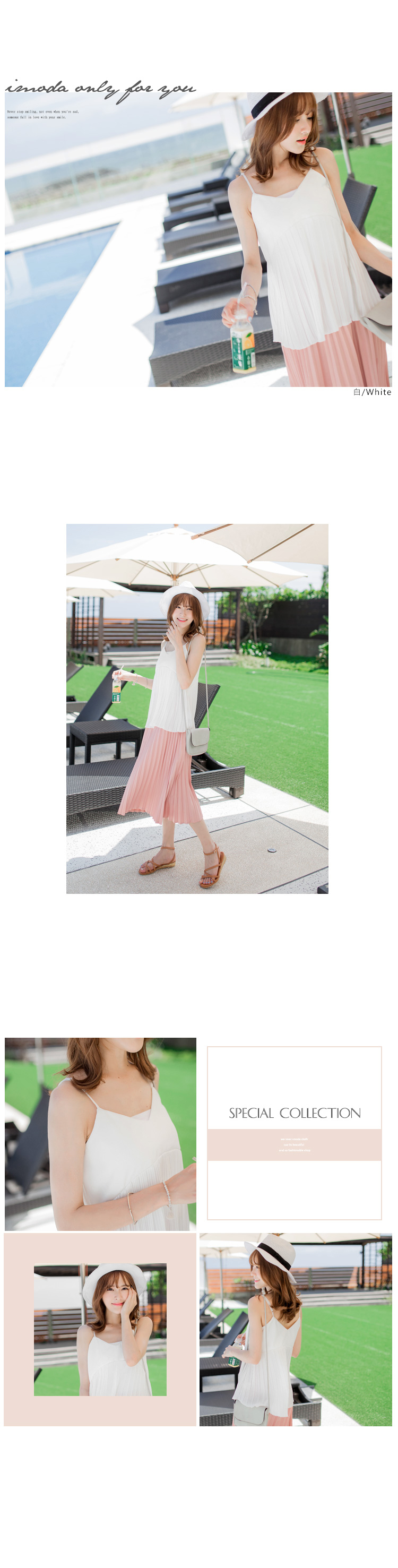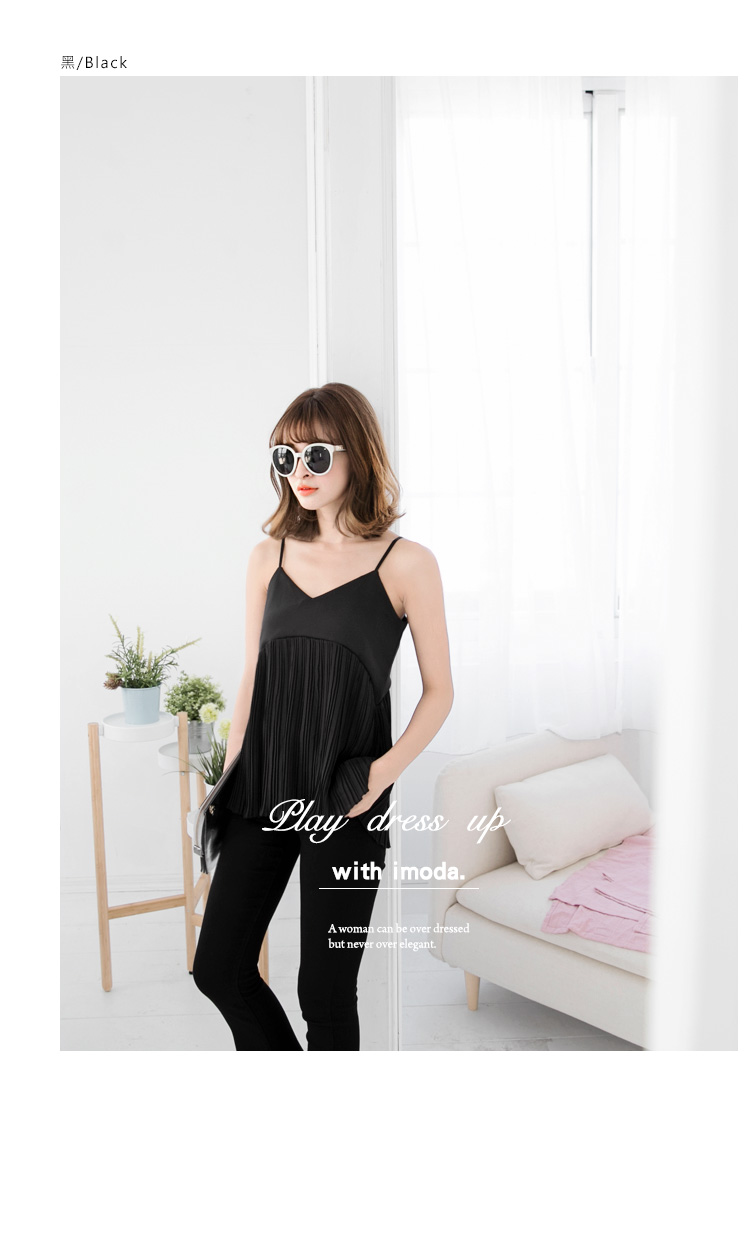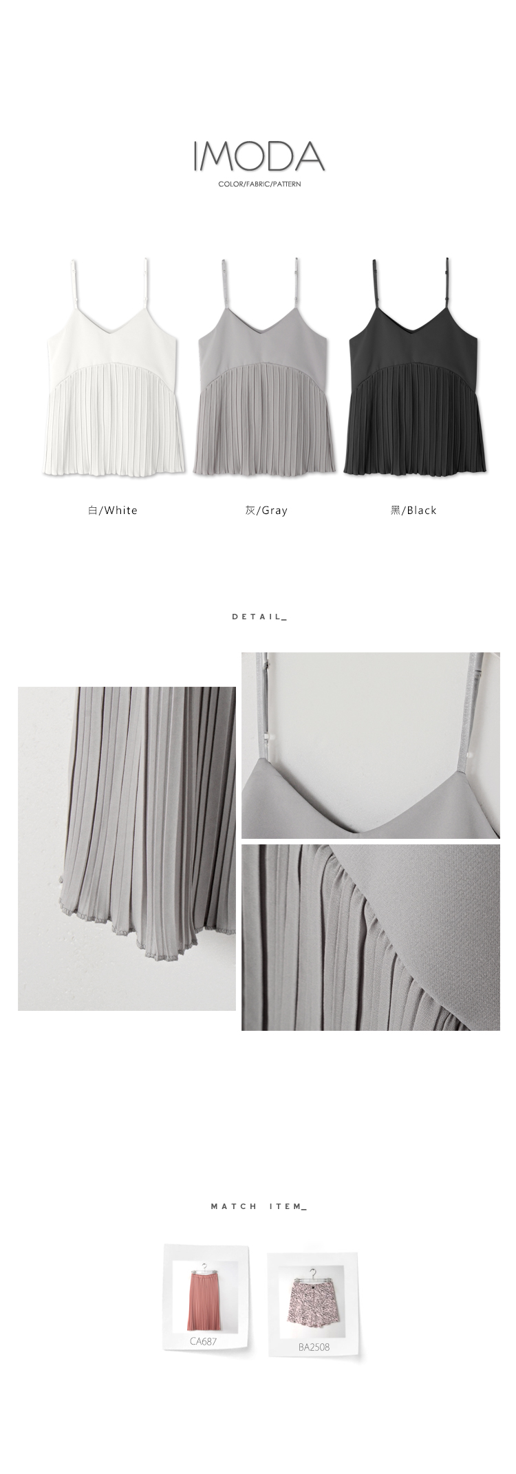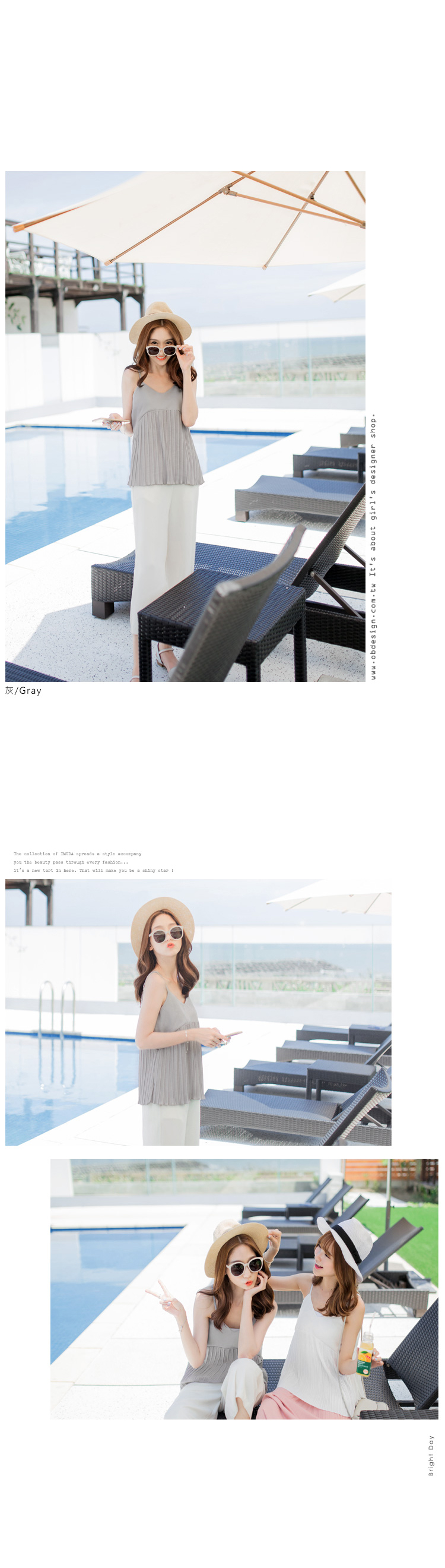 V領拼接百摺細肩帶上衣.3色質料品質好嗎耐穿嗎
