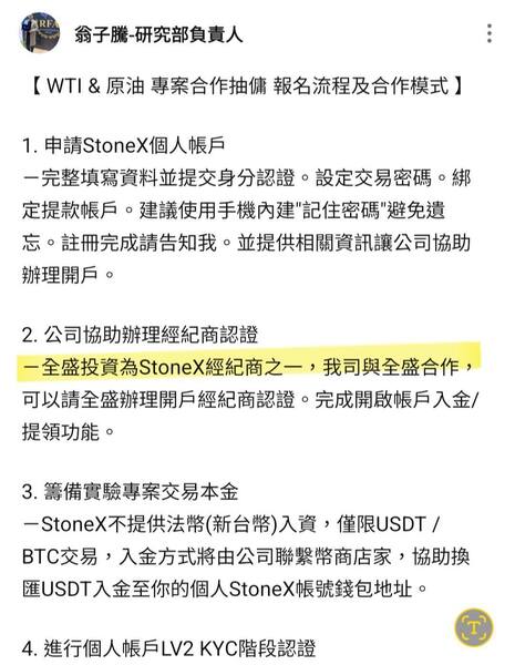 老師語氣沉穩,總是強調風控、紀律、穩定獲利,一開始只叫我們觀望,慢慢建立信任感。接著,他們推薦我下載一個叫做「StoneX」的App,說這是內部操作的平台,有專人協助下單、出入金都很方便。