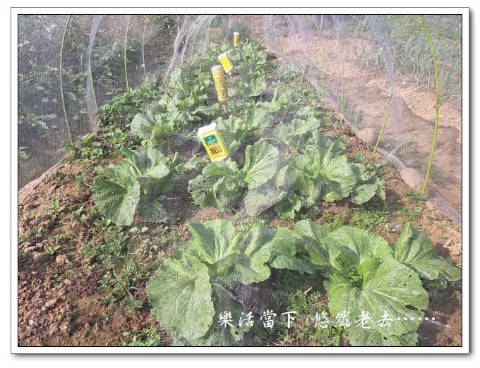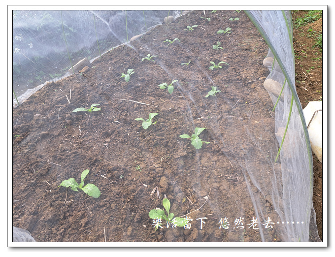 隔壁種水稻的田這一季休耕種了油菜,引來成群的紋白蝶,在種植芥菜苗時就不時有紋白蝶要來停在芥菜上,不得不邊種邊驅趕,種好後立即將防蟲網架好。這張防蟲網是新買的,賣家註明是加厚版,但實際上是非常的薄,是買過防蟲網最薄的一件,薄到令人懷疑只能用一次。