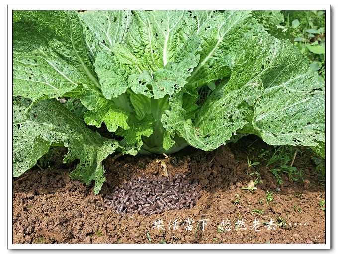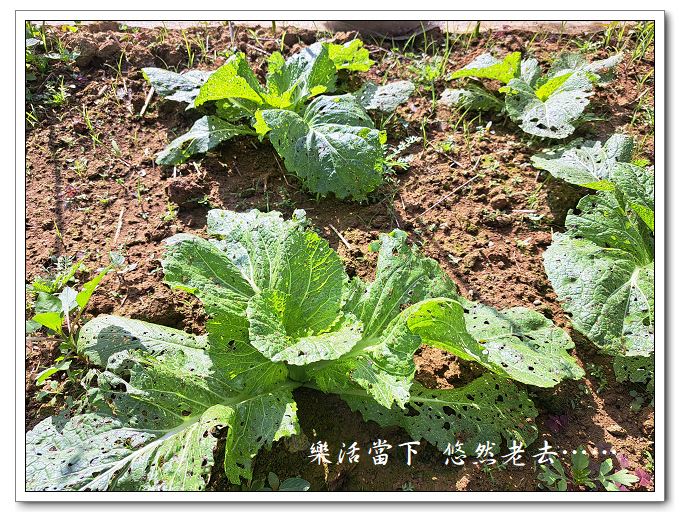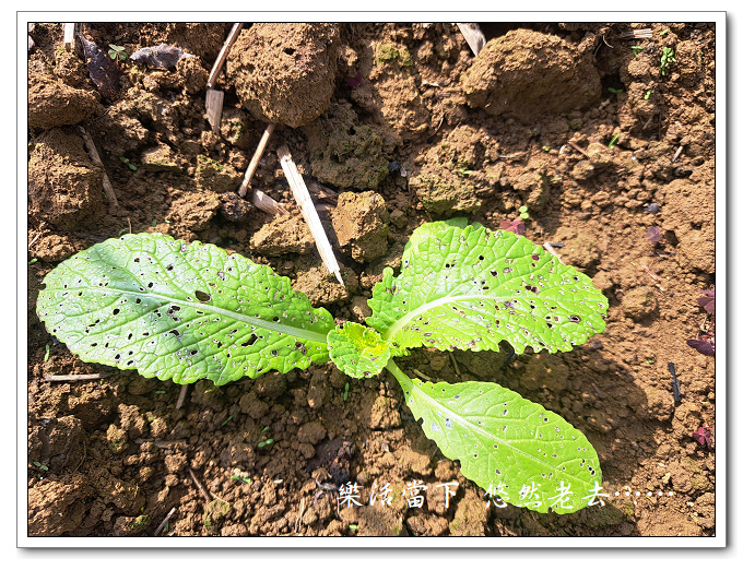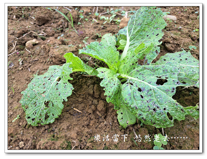 施肥後芥菜明顯長得比較好,但葉子被啃食得這麼嚴重說沒看到黃條葉蚤實在是自欺欺人,若再視而不見,那芥菜也別想能有收穫了。