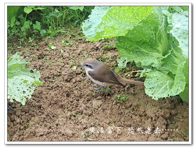 只要來田裡這隻紅尾伯勞就跟前跟後的,在除草時牠就跟在手邊附近吃蚯蚓、吃小昆蟲或蟲,甚至也會看到牠追著小青蛙跑。