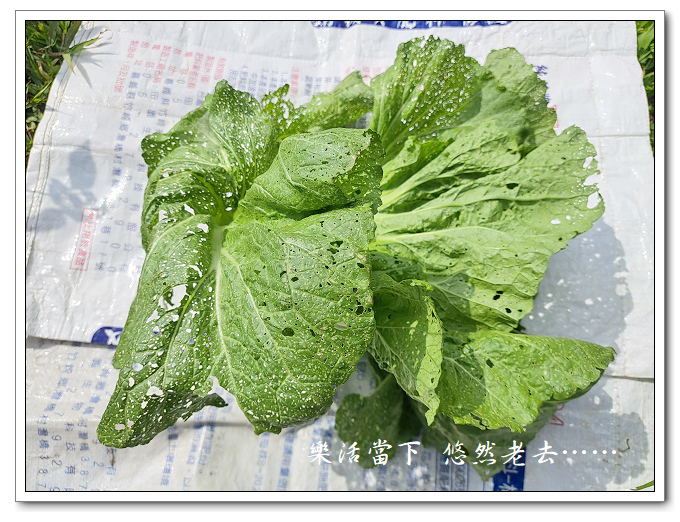 前幾天發現有一隻紋白蝶不知如何鑽進網子裡,幾天後就發覺有二株芥菜被蟲啃食嚴重,不得不抓蟲,否則很快的這些蟲長大後變成蝶又下蛋,那麼這些芥菜就會被啃食光而落得一場空。