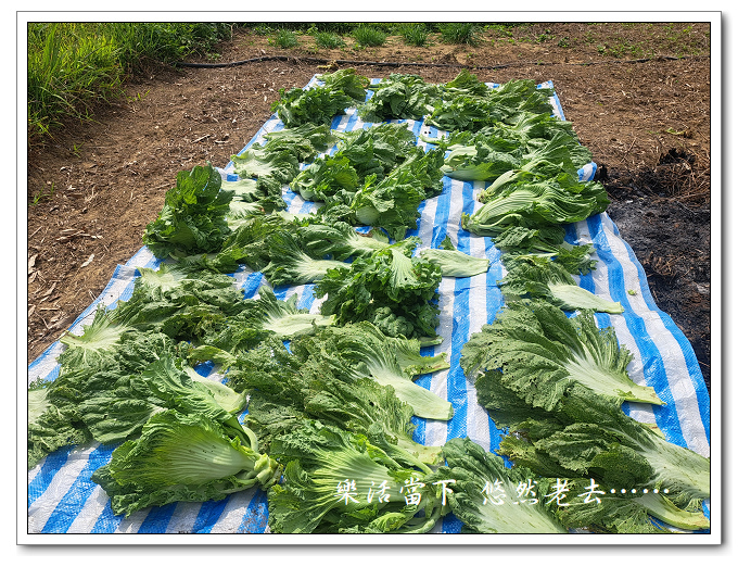 一開始的想法,種這些芥主要目的是醃製酸菜,趁著好天氣摘了四株芥菜放在陽光下萎凋,再帶回家醃製酸菜。