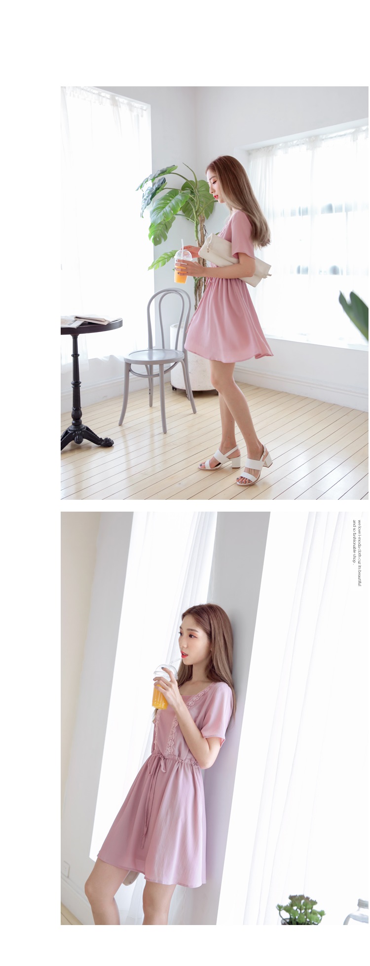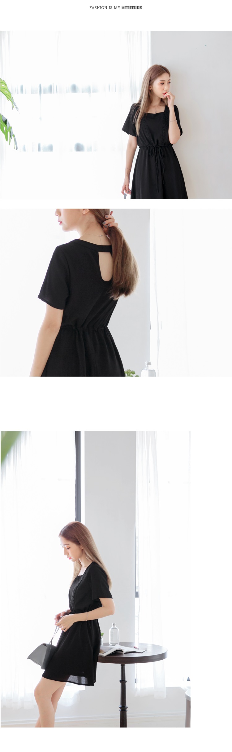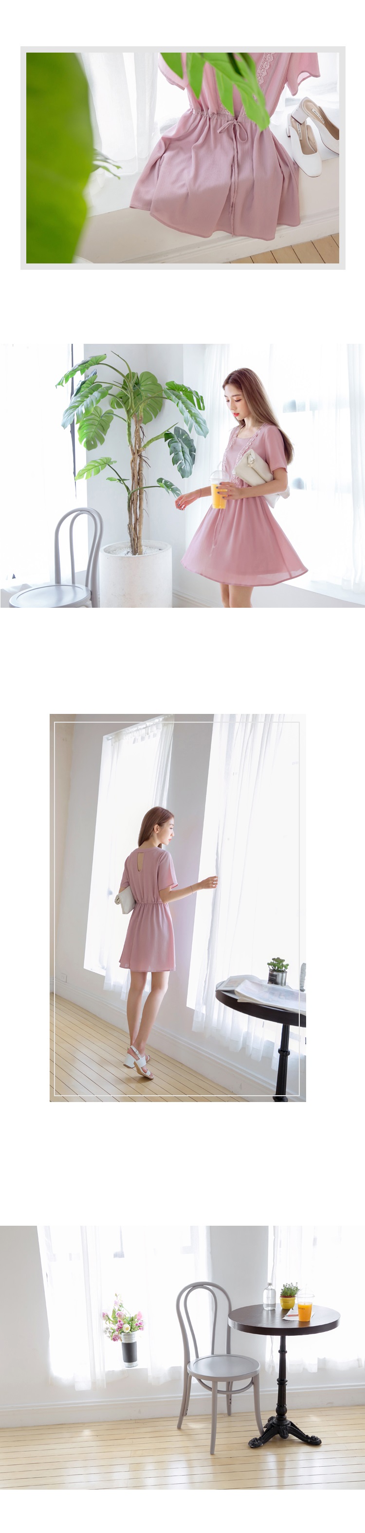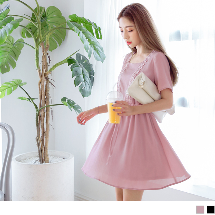 抽腰綁帶鏤空美背前襟蕾絲點綴純色細皺洋裝.2色可以用洗衣機洗嗎