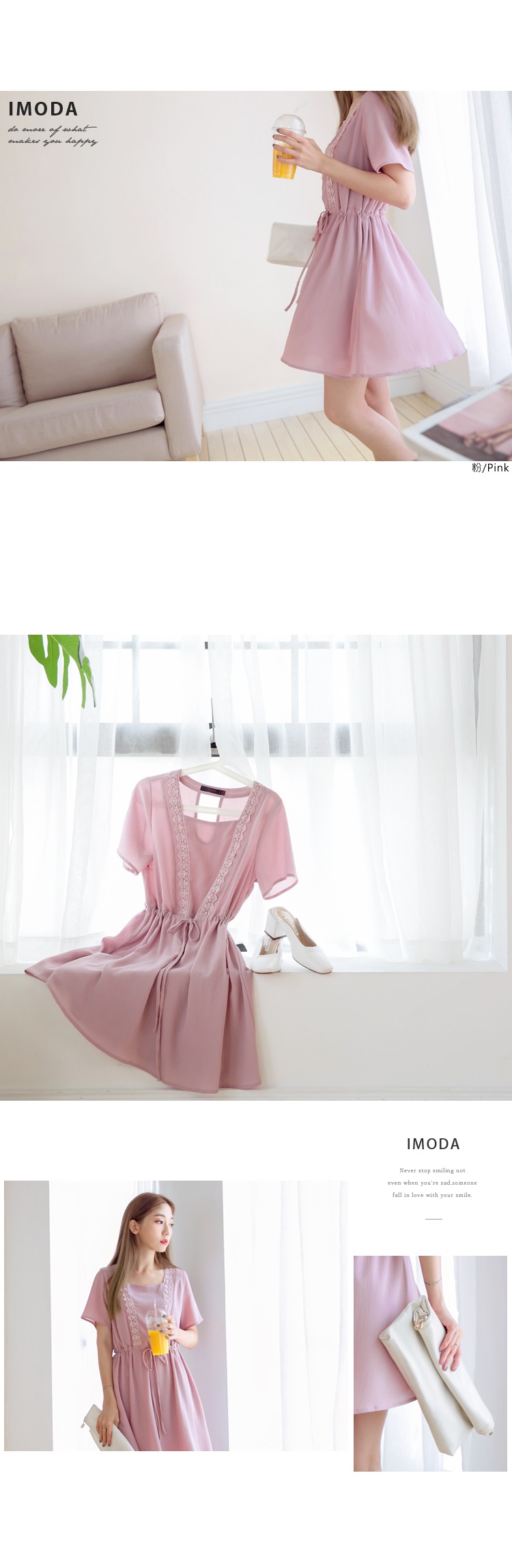 抽腰綁帶鏤空美背前襟蕾絲點綴純色細皺洋裝.2色質料品質好嗎耐穿嗎