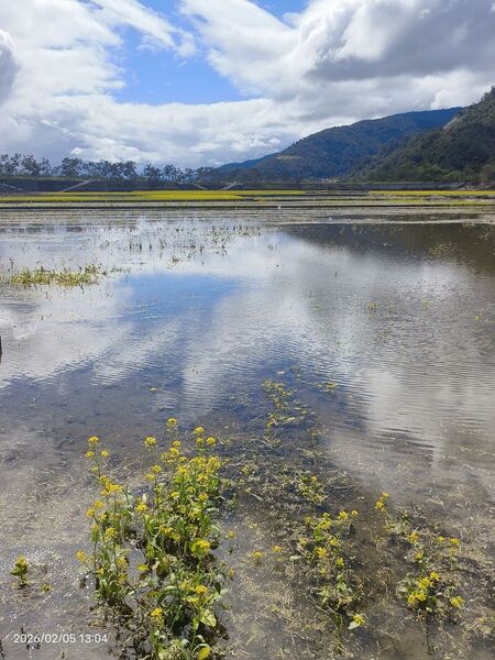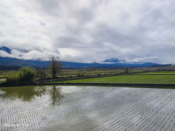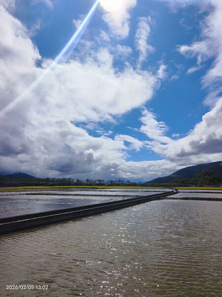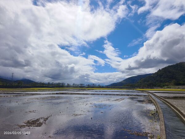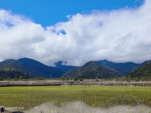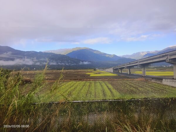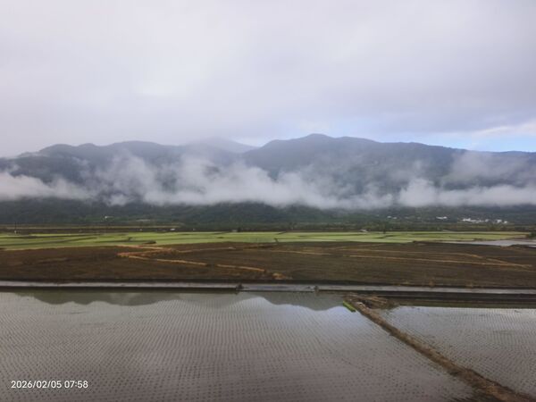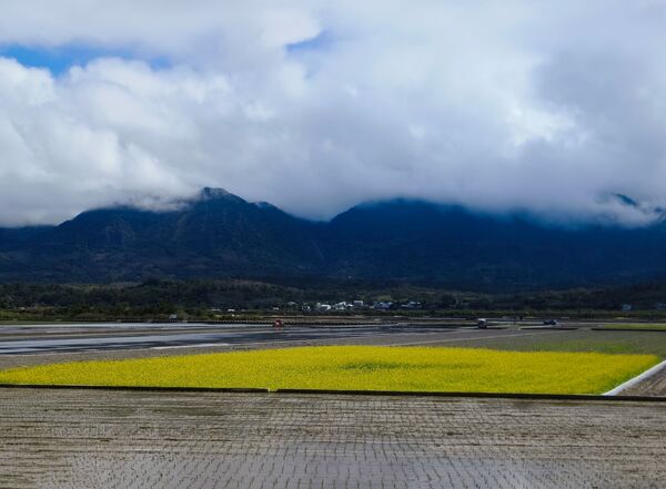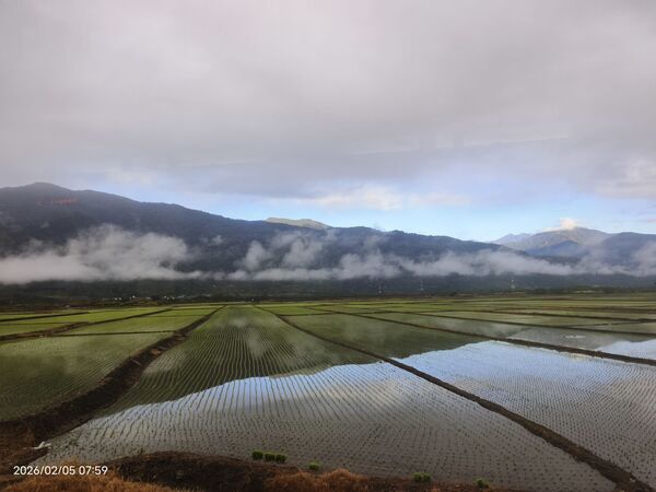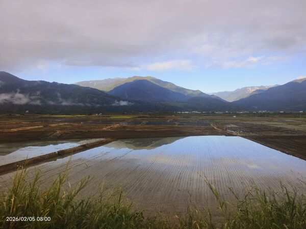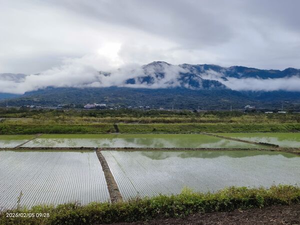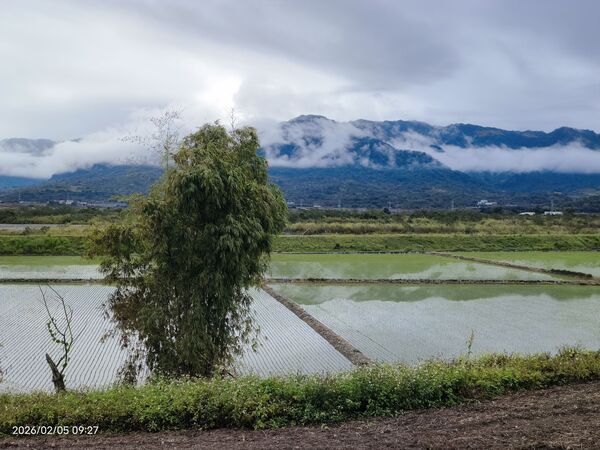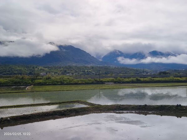 晨間細雨,中央山脈水氣氤氳,水稻、花田、山脈,以及輕掛山腰如白絲帶的山嵐,層次分明,空靈而寂靜,彷若一幅又一幅的畫作呈現在眼前,教人讚嘆不已!將霎那化為永恆。