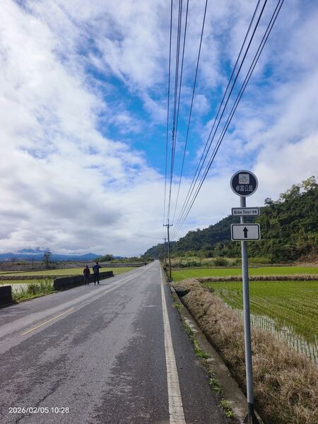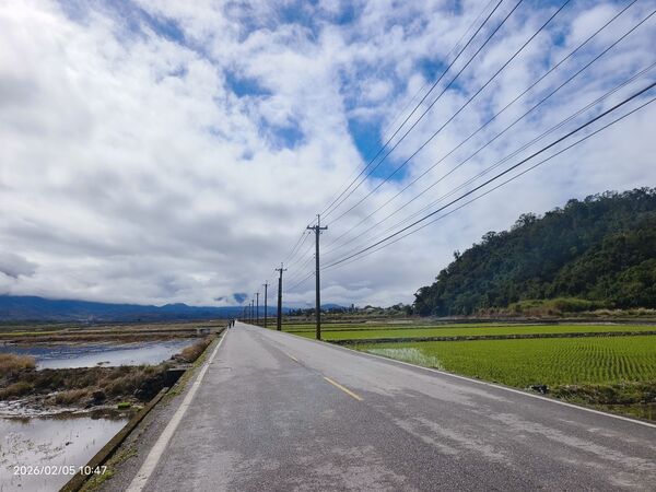 花75線兩旁係大片成畦縱谷水田,造訪時正是春耕期,沒有了房屋和岔路阻擋視線,一望無際已種植的稻苗整齊排列,猶如嫩綠畫布,生機盎然。