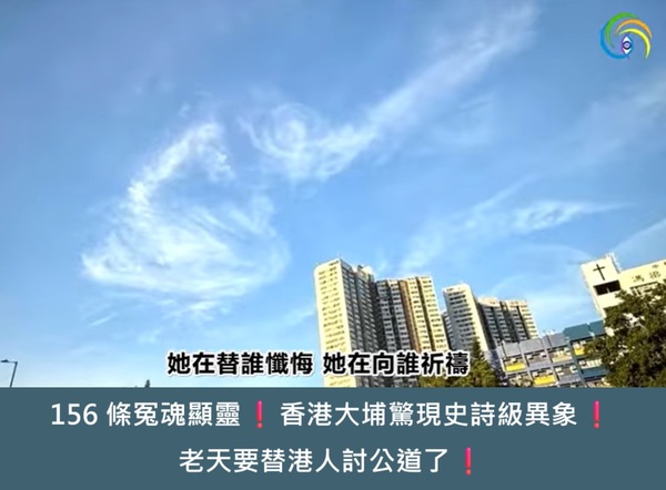 香港 156 條冤魂顯靈 雲層出現一個跪拜姿勢的人形