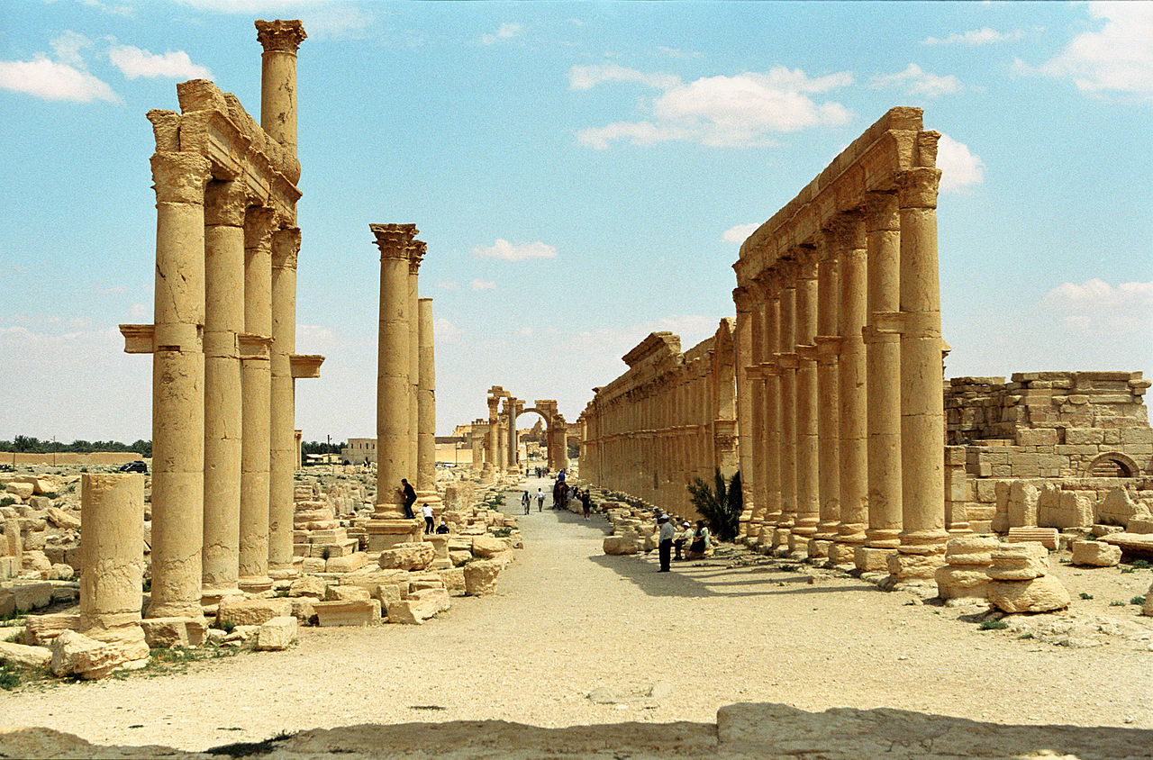 The Great Colonnade at Palmyra was the main colonnaded avenue in the ancient city of Palmyra in the Syrian Desert. The colonnade was built in several stages during the second and third century CE and stretched for more than a kilometer. It linked the Temple of Bel, in the southeastern end of the city, to the West Gate and the Funerary Temple in the northwestern part. As of May 2015, the area is under the control of the Islamic State.The colonnade consists of three sections that were built separately over the course of the second and third century CE.