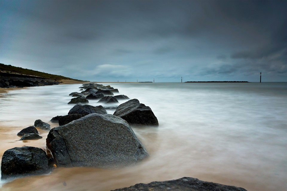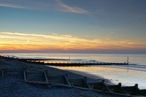 諾福克(郡)(:Norfolk,,英國英格蘭東部的郡。諾福克歷史上是古代東盎格利亞王國(Kingdom of East Anglia)的重要組成部分。今冬英國缺失雨雪但是氣溫頗低諾福克地區平均溫度大約攝氏5度左右寒風烈日遊客稀少的海岸使得攝影師採取最好的鏡頭與畫面呈現出幽靜冷清的海岸風景區.