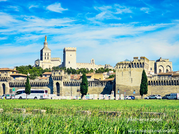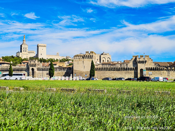 #4.從亞維儂城牆(Remparts dAvignon)外望向舊城區......中世紀時(1309年到1377年間),天主教教皇克雷蒙五世(Clement V)因故從羅馬梵締岡遷移至此,前後共有七位教宗在亞維儂教廷生活,直到格利高里十一世(Gregory VI)將教廷遷回羅馬,後來卻出現兩地各立教宗的情形,史稱「大分裂」。教廷對亞維儂的統治一直延續到1791年法國大革命之時,後來亞維儂成為法國的一部分。