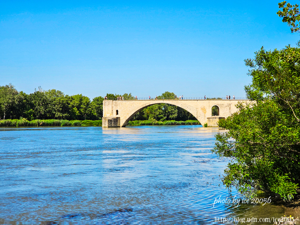 #26.聖貝內澤橋(Pont Saint-Bénezet)一隅......有別於第一天抵達時有點多雲的天氣,這天黃昏的天氣非常好,隆河河水顯得特別湛藍、漂亮。