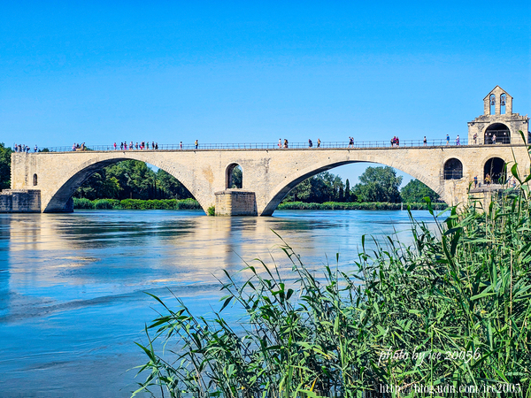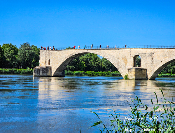 #24.聖貝內澤橋(Pont Saint-Bénezet)一隅......橫跨在隆河(Le Rhône)上的聖貝內澤橋建於1171年到1185年間,橋的長度約900公尺,但隆河時常氾濫而多次重建,直到1668年,橋的另一端被洪水沖毀後就不再使用。這座斷橋原先共有22座橋拱,後來遭到拆除,僅保存今日所見的4座橋拱。