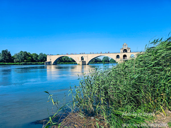 #25.聖貝內澤橋(Pont Saint-Bénezet)一隅......這次來訪,除了河水高漲,岸邊的蘆葦也長很高,因此無法拍的斷橋的全貌。