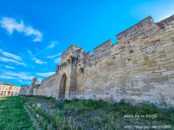 #2.亞維儂城牆(Remparts dAvignon)一隅......亞維儂城牆是一道長達4,330公尺的環形城牆,建於亞維儂/阿維尼翁教皇時期(1309-1377),宛若一座防禦堡壘般將歷史悠久的舊城區完全環繞。古老的城牆擁有39座塔樓和7座主城門,是歐洲同類建築中保存最完好的中世紀城牆之一。雖然現存城牆並非所有部分都可追溯至中世紀,但它仍令人嘆為觀止。
